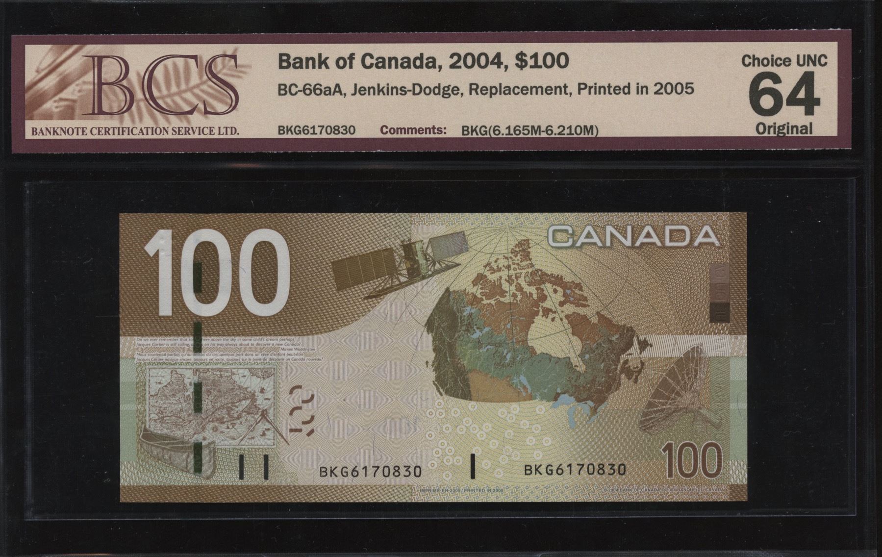 BC-66aA. Jenkins-Dodge, Replacement, Printed in 2005. BCS Choice UNC 64 Original. S/N:BKG6170830, BKG(6.165M-6.210M).