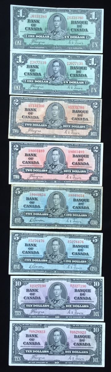 Lot includes 2 sets of notes from $1-$10. 8 Pcs.