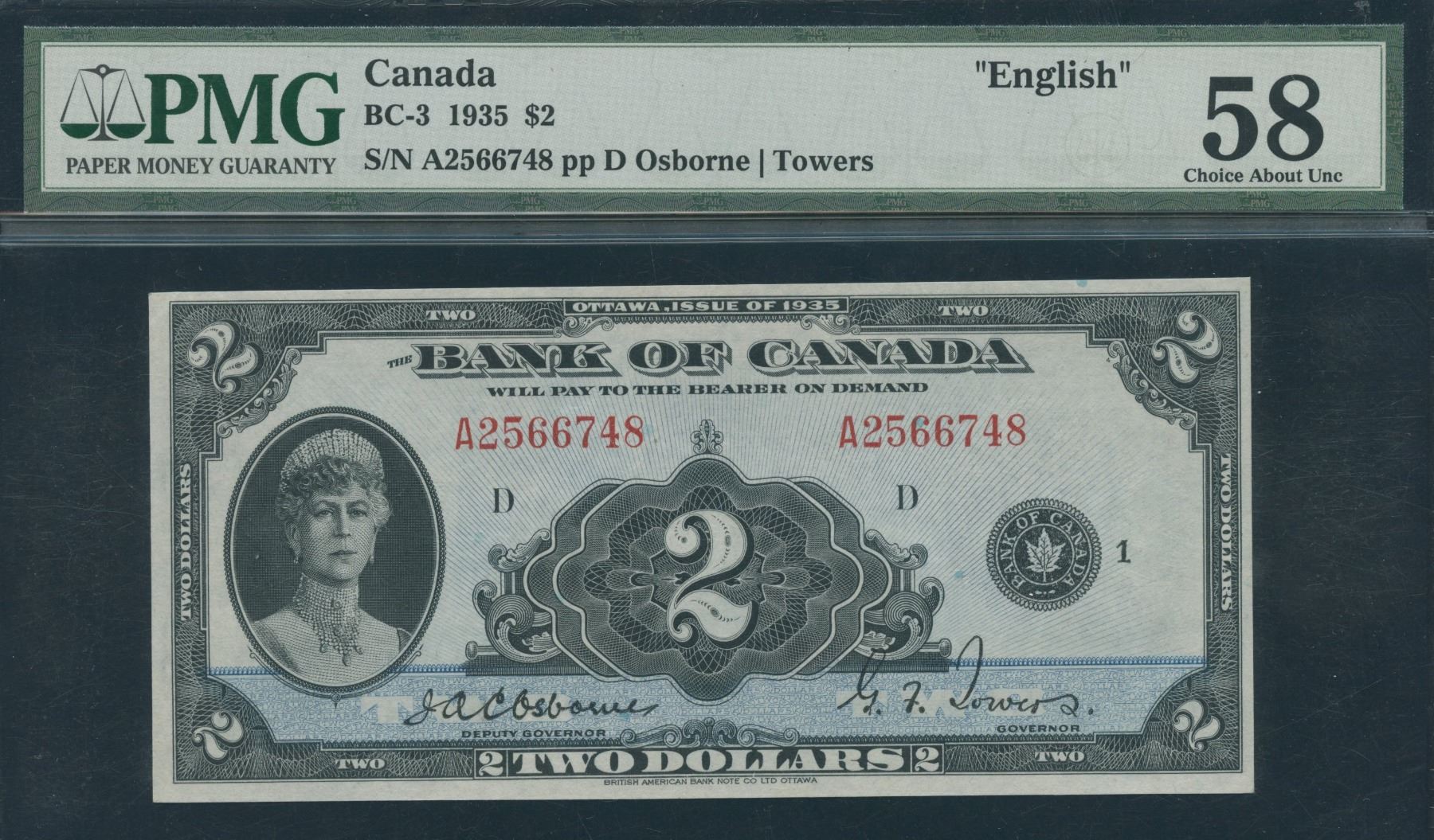 BC-3. PMG Choice AU58. S/N:A2566748/D.