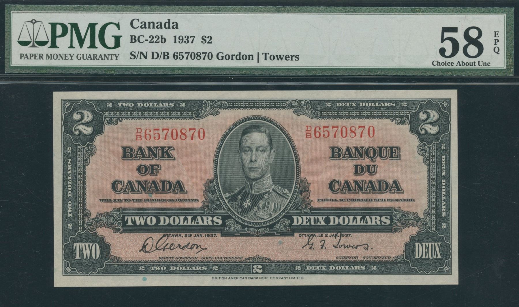 BC-22b. PMG Choice AU58 EPQ. S/N:D/B6570870.