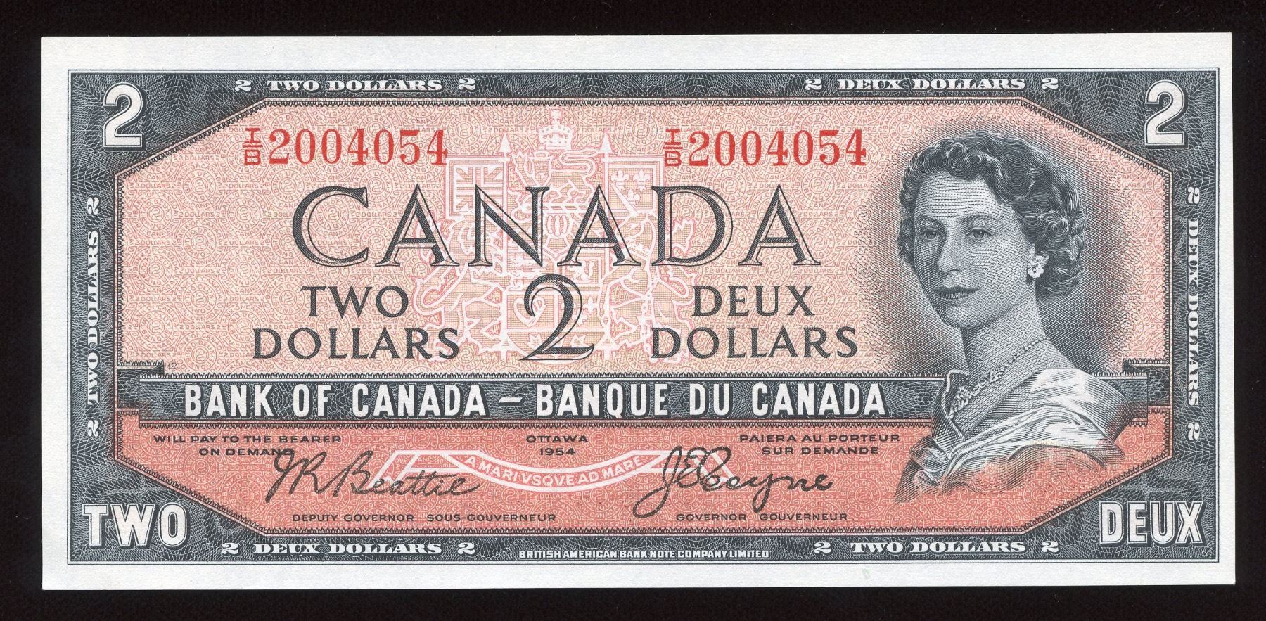 Bank of Canada $2, 1954 Devil's Face Transition Prefix
