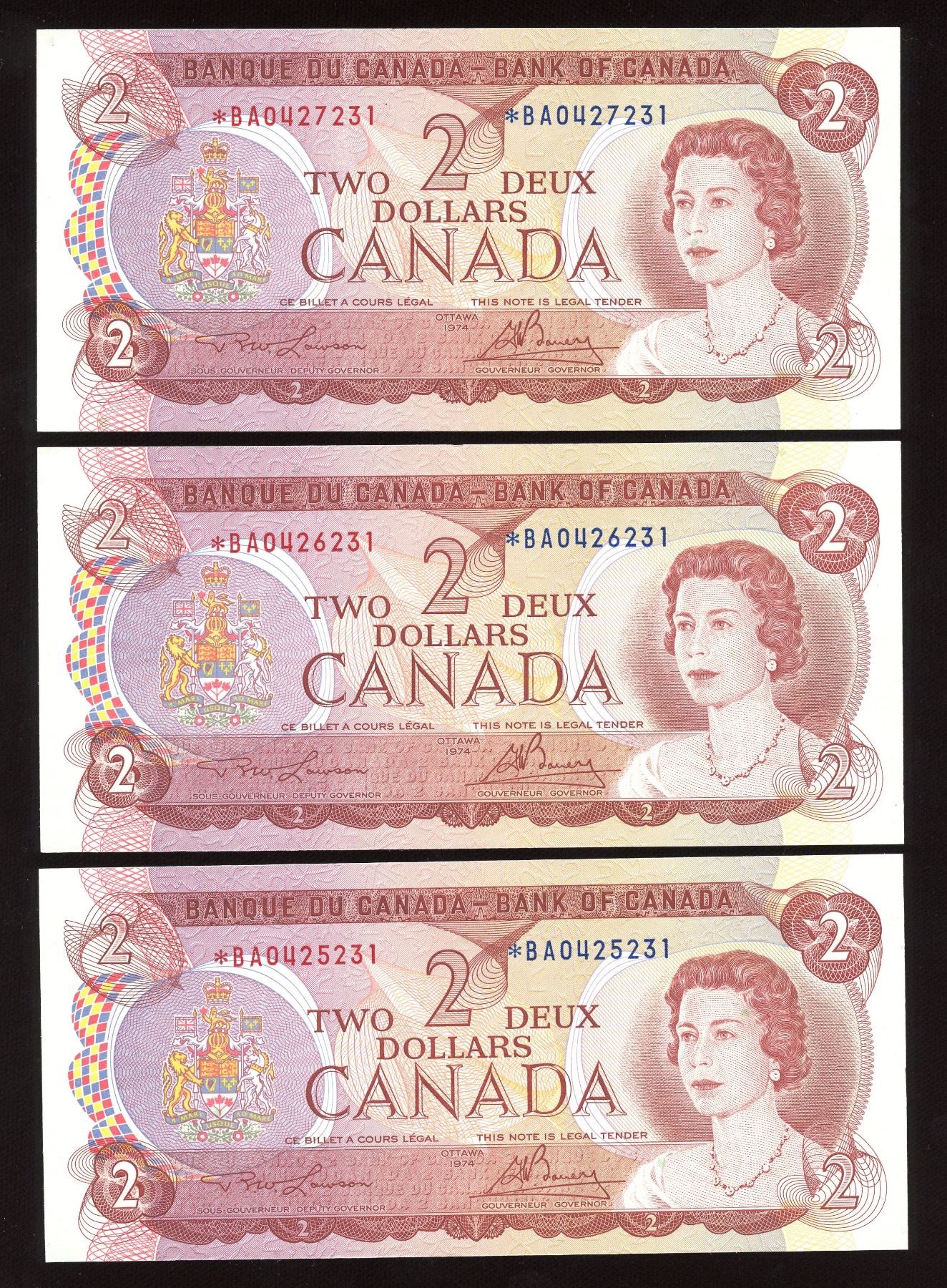 Bank of Canada $2, 1974 Replacements - Lot of 3