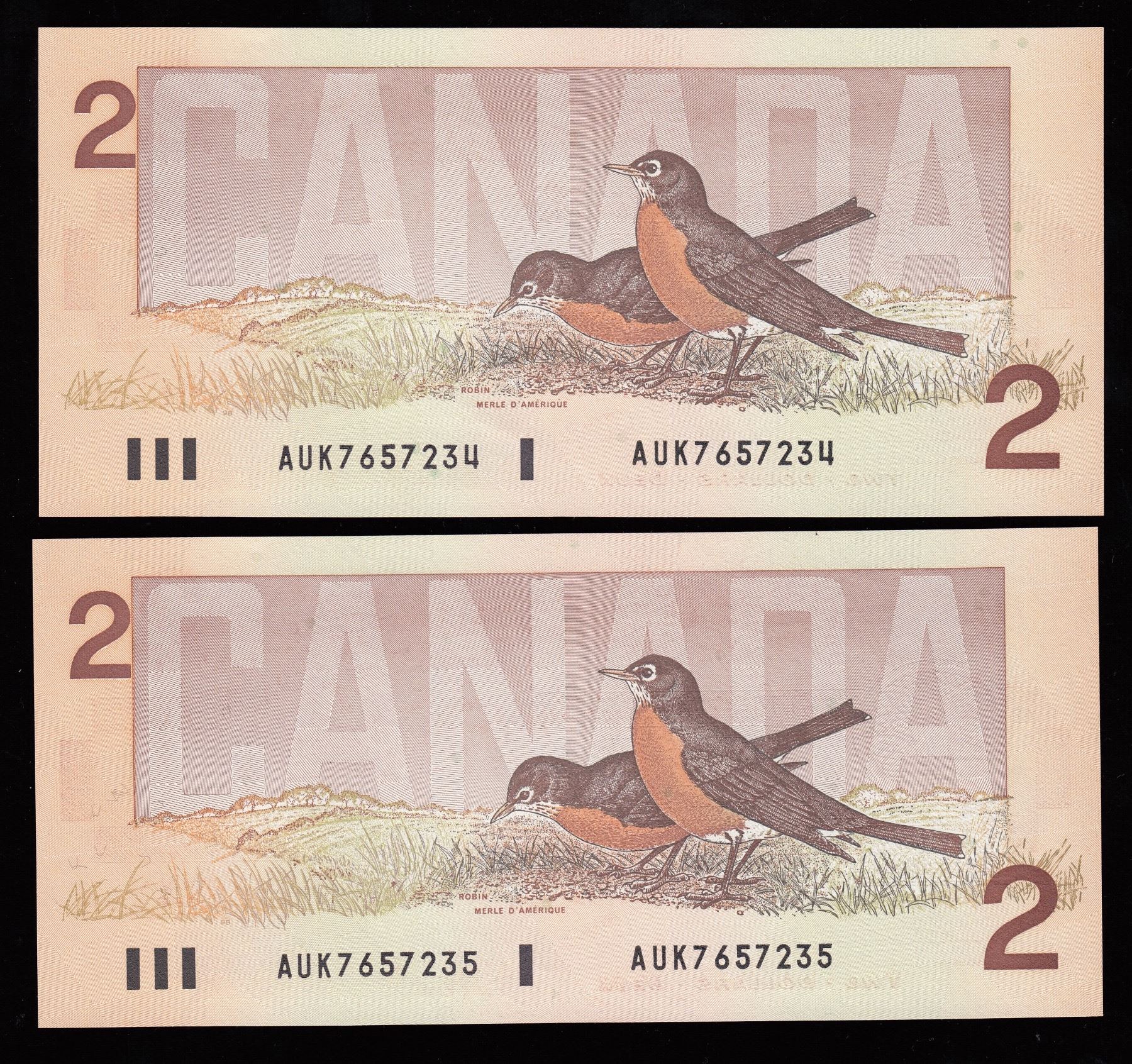 BC-55b. Unc's. Challenging AUK prefix. S/N: AUK7657234-35. 2 Pcs.