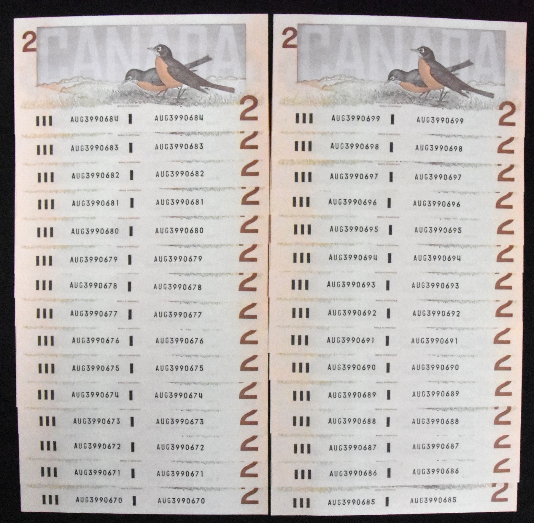 BC-55a. Unc's. Crow-Bouey transitional prefix range. Catalogue value is $30 ea. 30 Pcs.