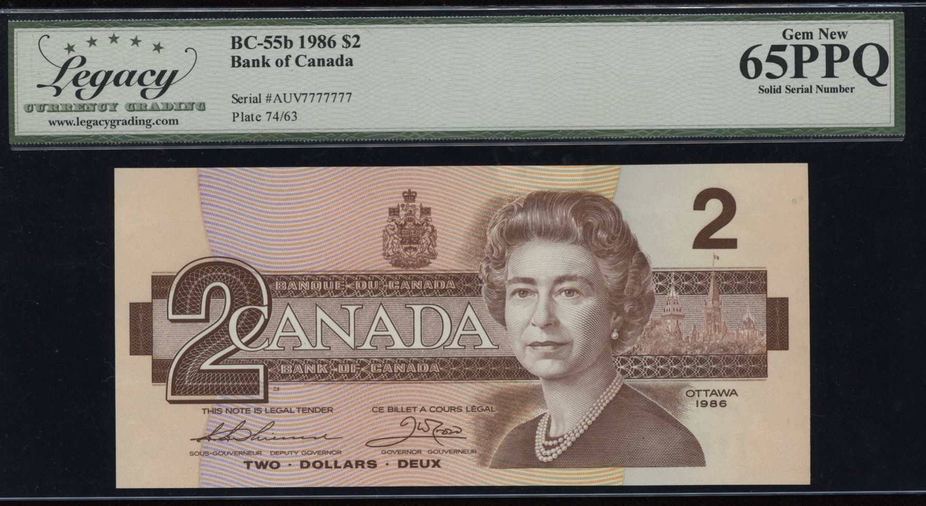 BC-55b. N1-i. Legacy Gem New 65 PPQ. S/N: AUV7777777.