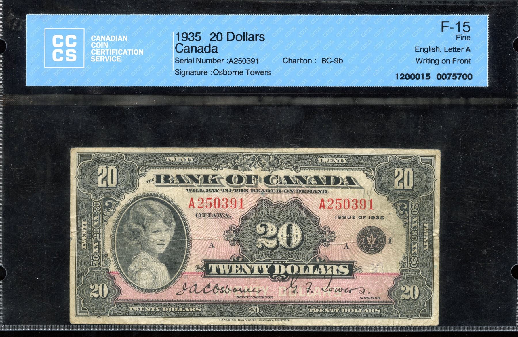 BC-9b. CCCS F-15, writing on front. S/N:A250391/A.
