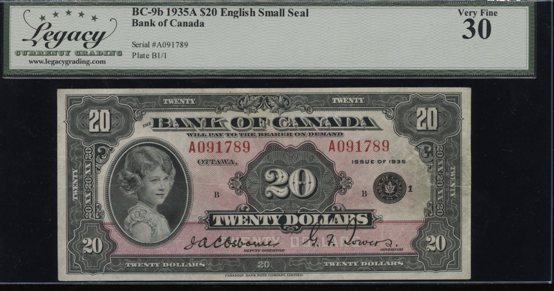 BC-9b. Legacy VF30, Small Seal. Featuring the familiar Princess Elizabeth. S/N: A091789/B.