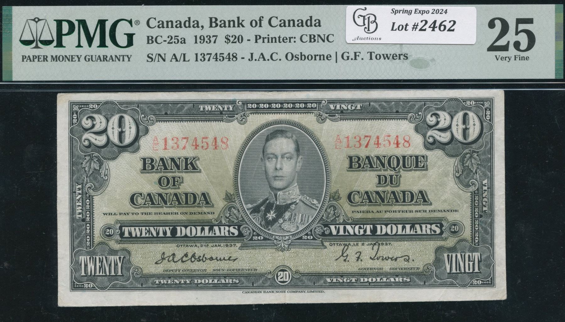 BC-25a. PMG VF25. Osborne-Towers. S/N: A/E1374548.