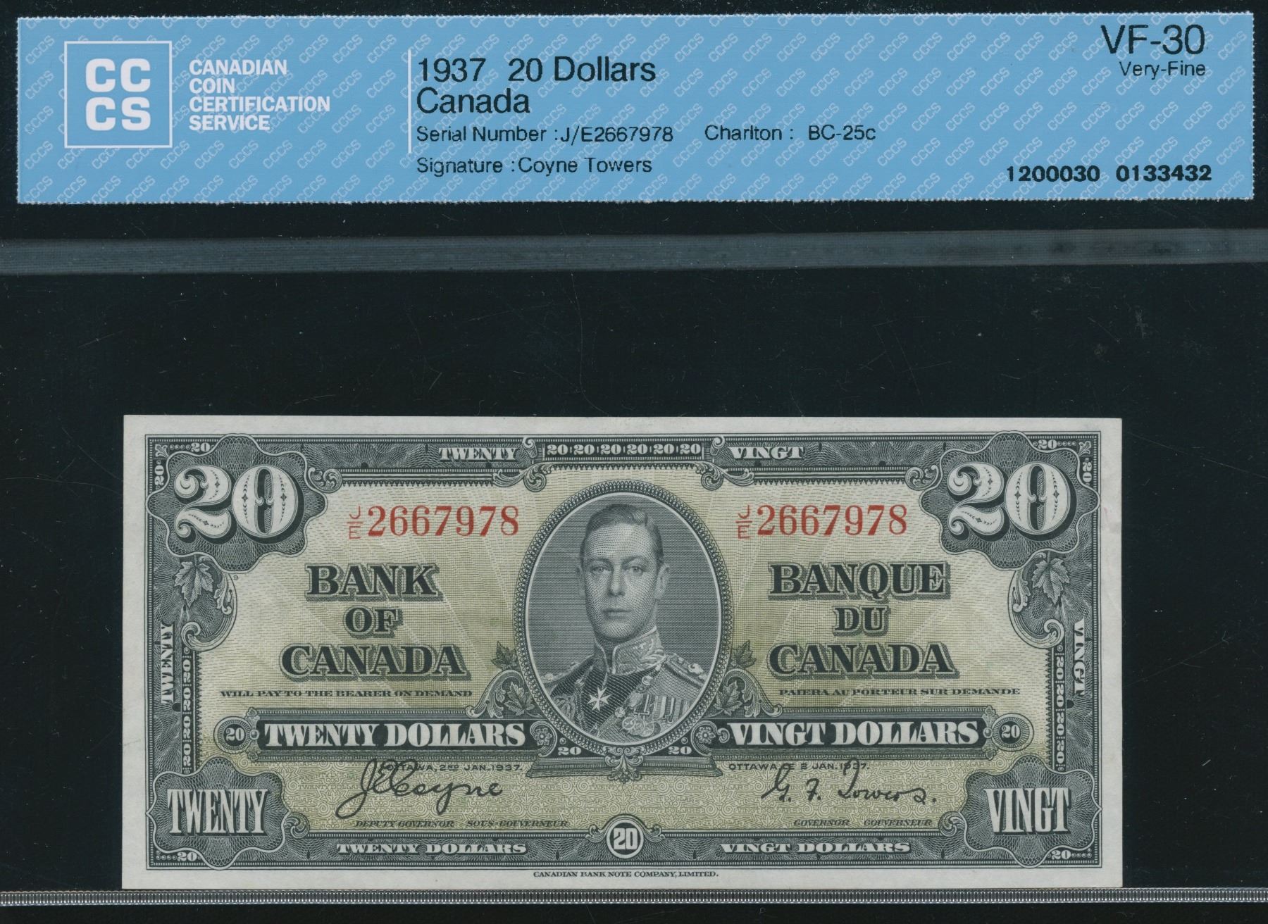 BC-25c. CCCS Very Fine 30. S/N:J/E2667978.