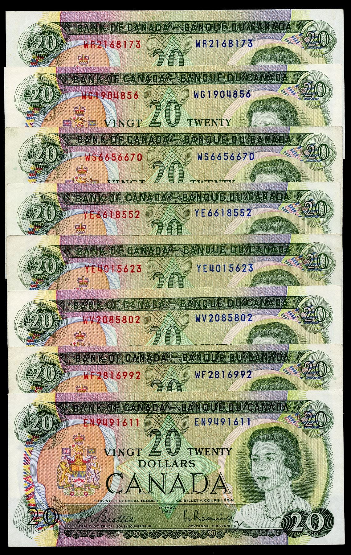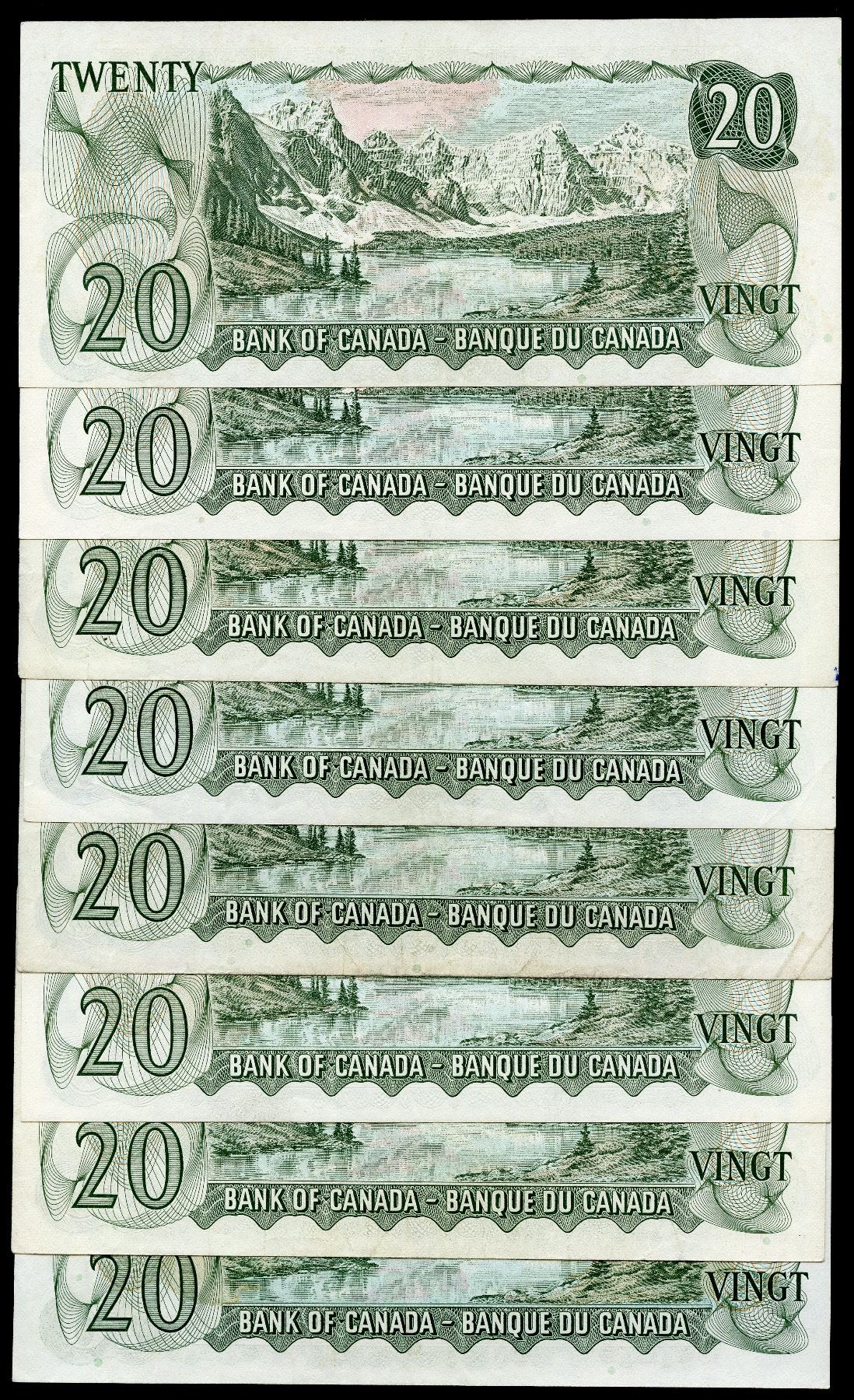 Bank of Canada $20, 1969 - Lot of 8