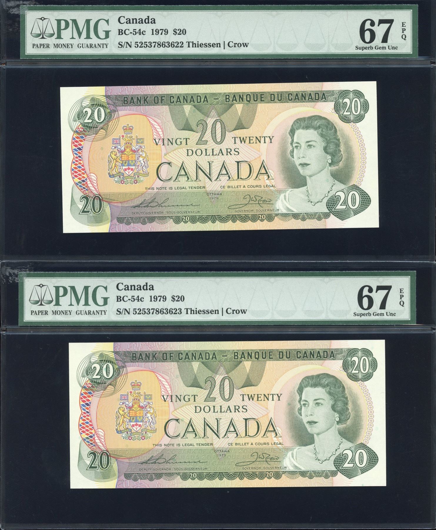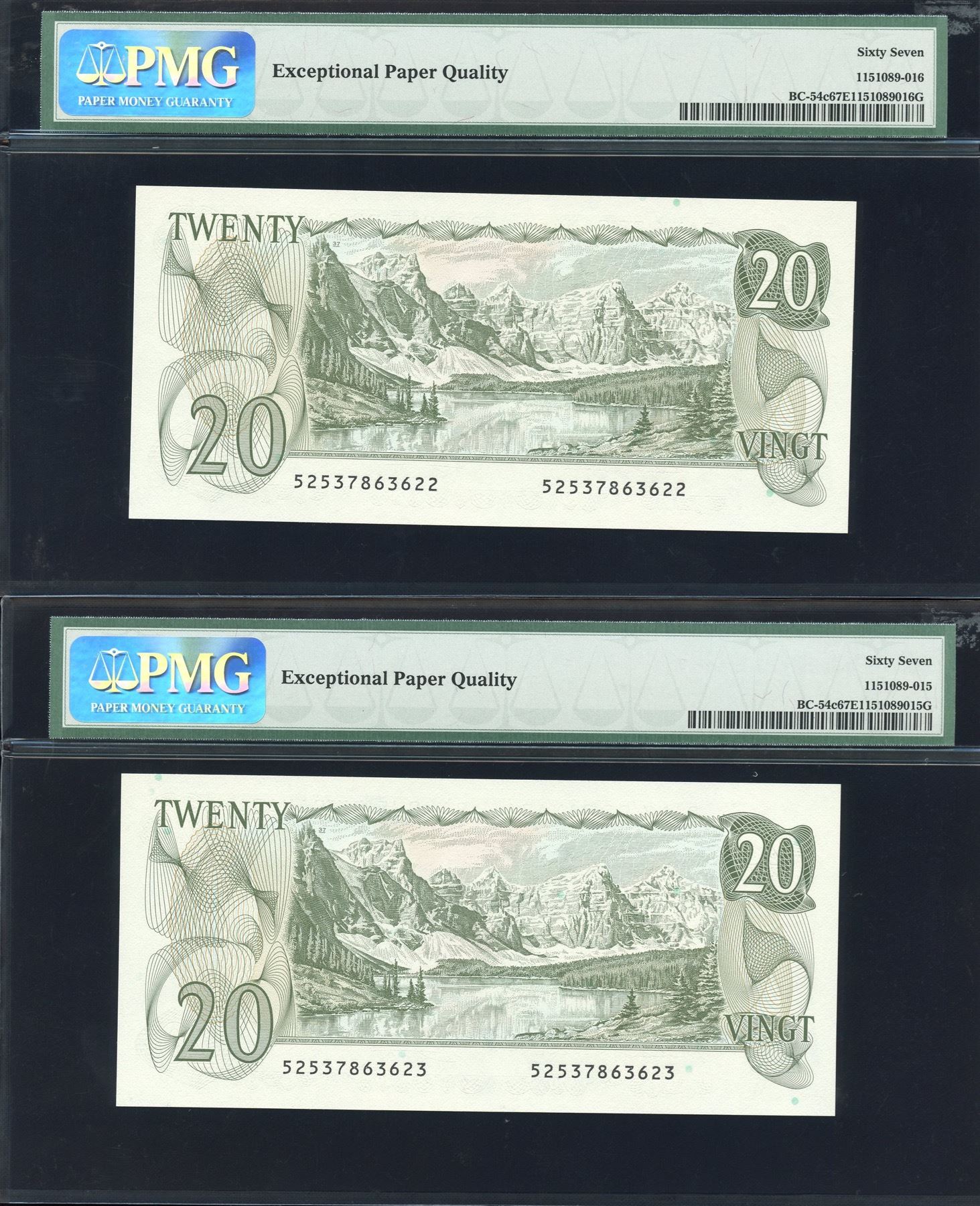 BC-54c. PMG Superb Gem Unc's. EPQ. S/N: 52537863622-3623. 2 Pcs.
