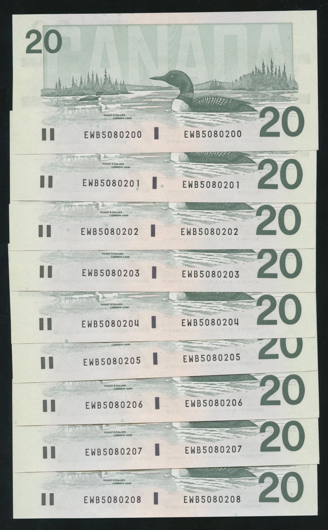 BC-58d. Unc's. S/N: EWB5080200-0208. 9 pcs.