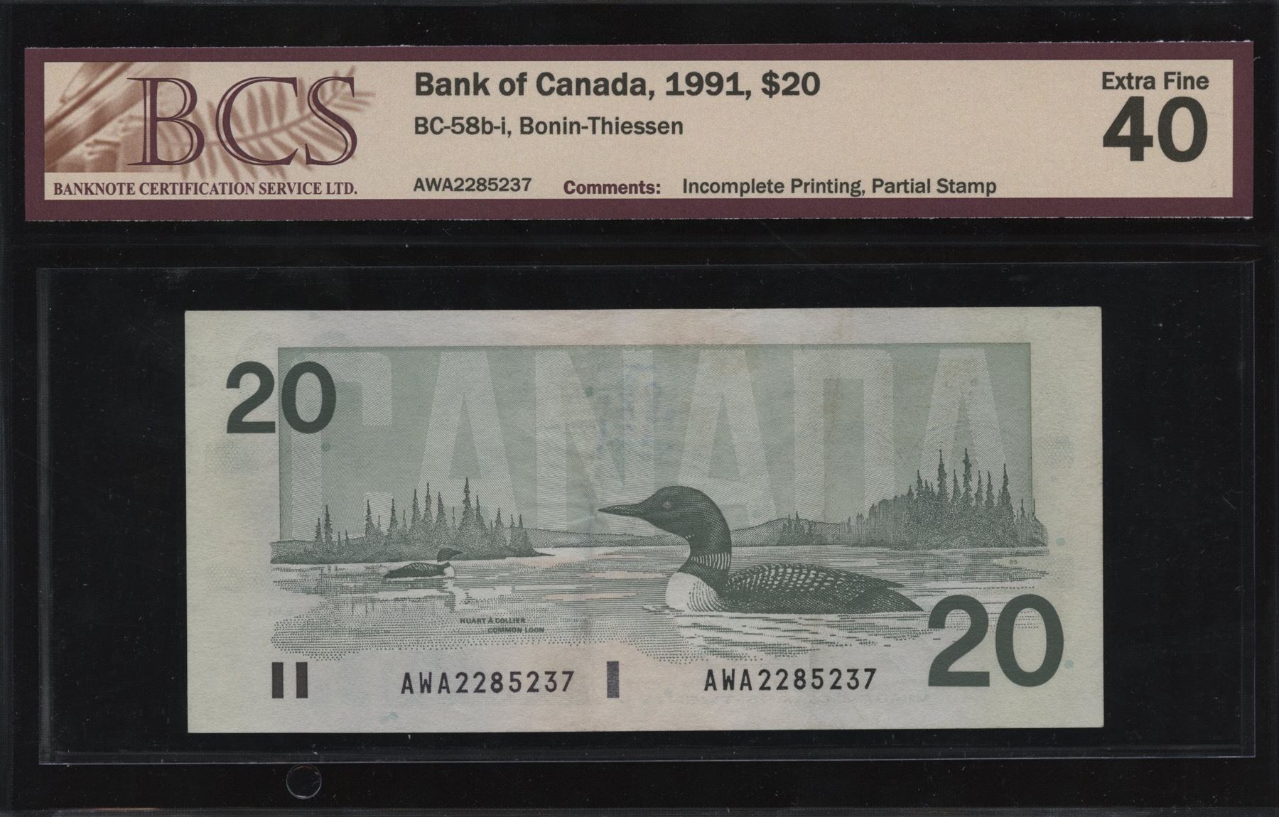 BC-58b-i. BCS Extra Fine 40. Incomplete Printing on the face of the note. The face of the note is missing the background tint.