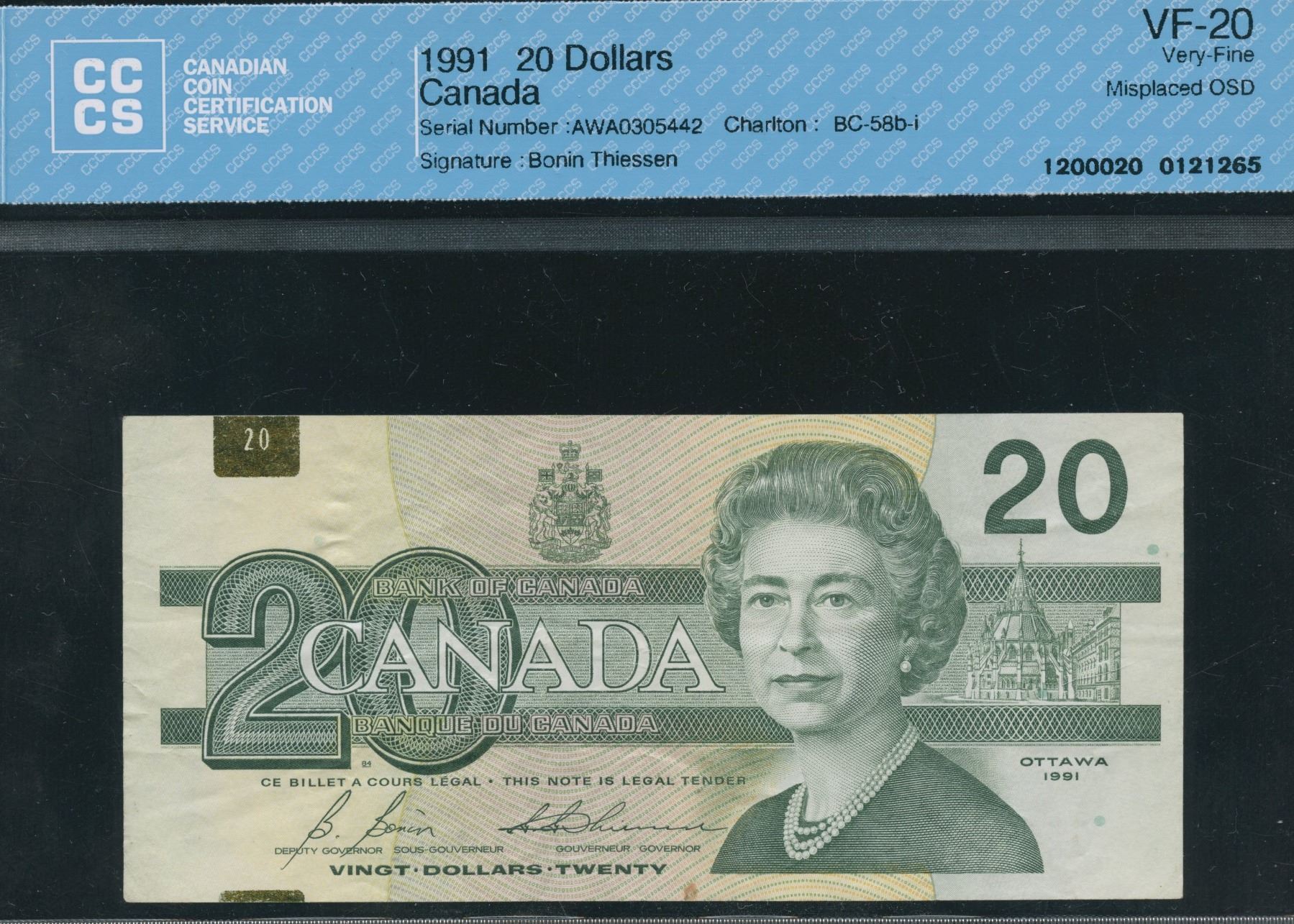 BC-58b-i, E8. Rarely seen optical security device error where a second piece is shown at bottom. CCCS Very Fine 20. S/N: AWA0305442.