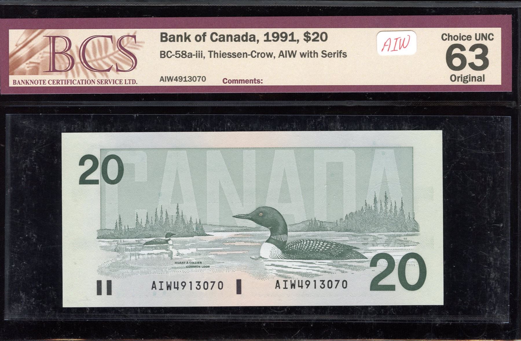 BC-58a-iii. BCS Choice UNC 63 Original. S/N: AIW4913070.