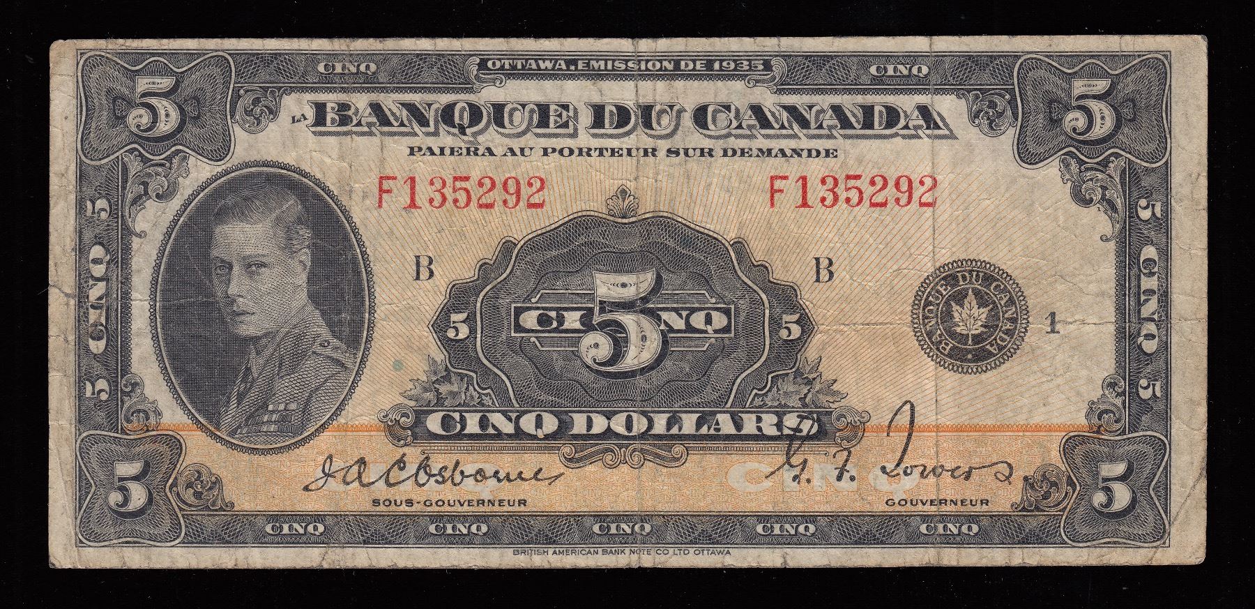 BC-6. Fine with a small tear at left. S/N: F135292/B.