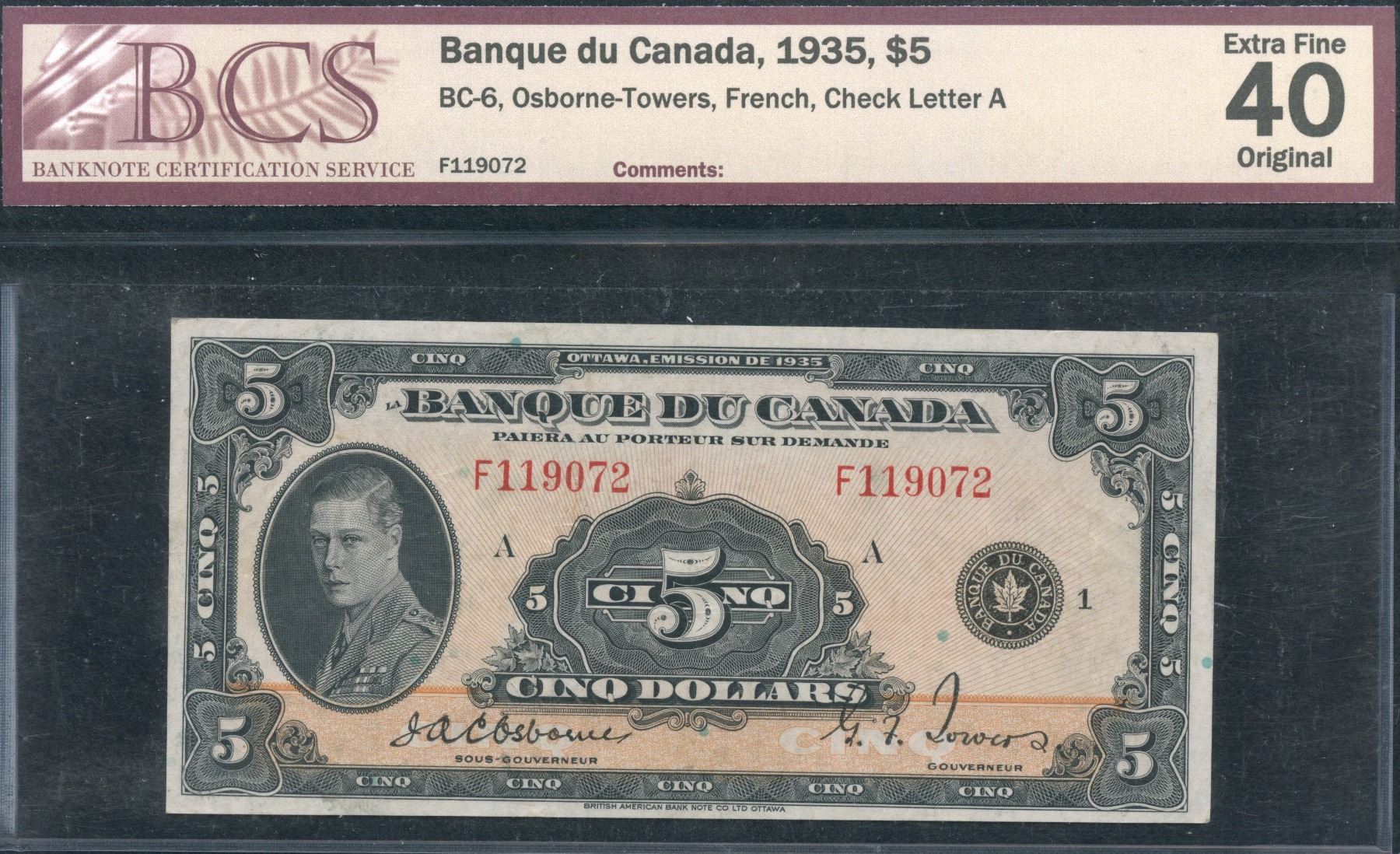 BC-6. BCS Extra Fine 40. S/N:F119072/A.