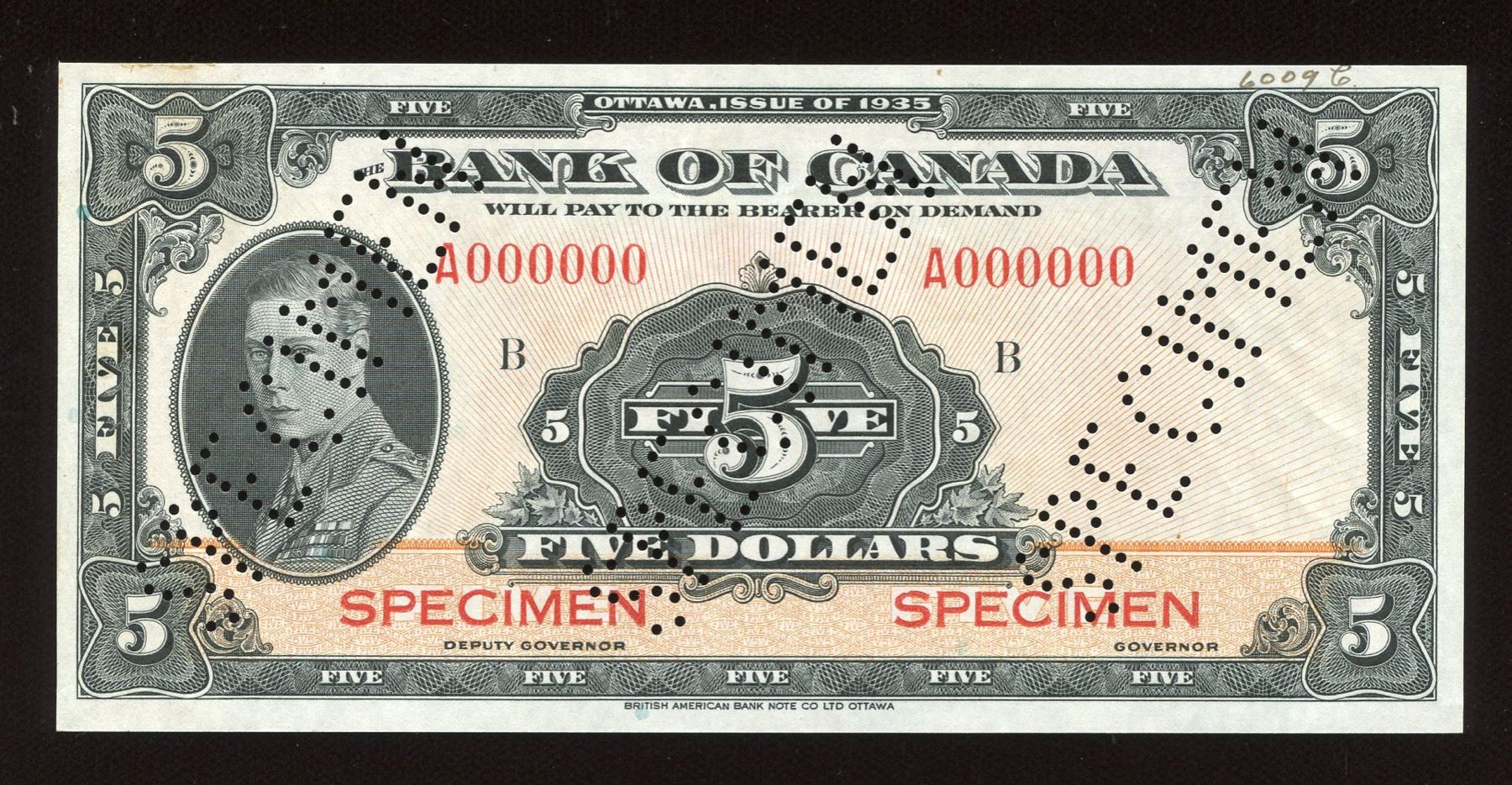 BC-5S. AU with glue stain at back right and writing at top right. Charlton states the quantity sold at the Bank of Canada sale was 9, and catalogues for $2000 in AU.