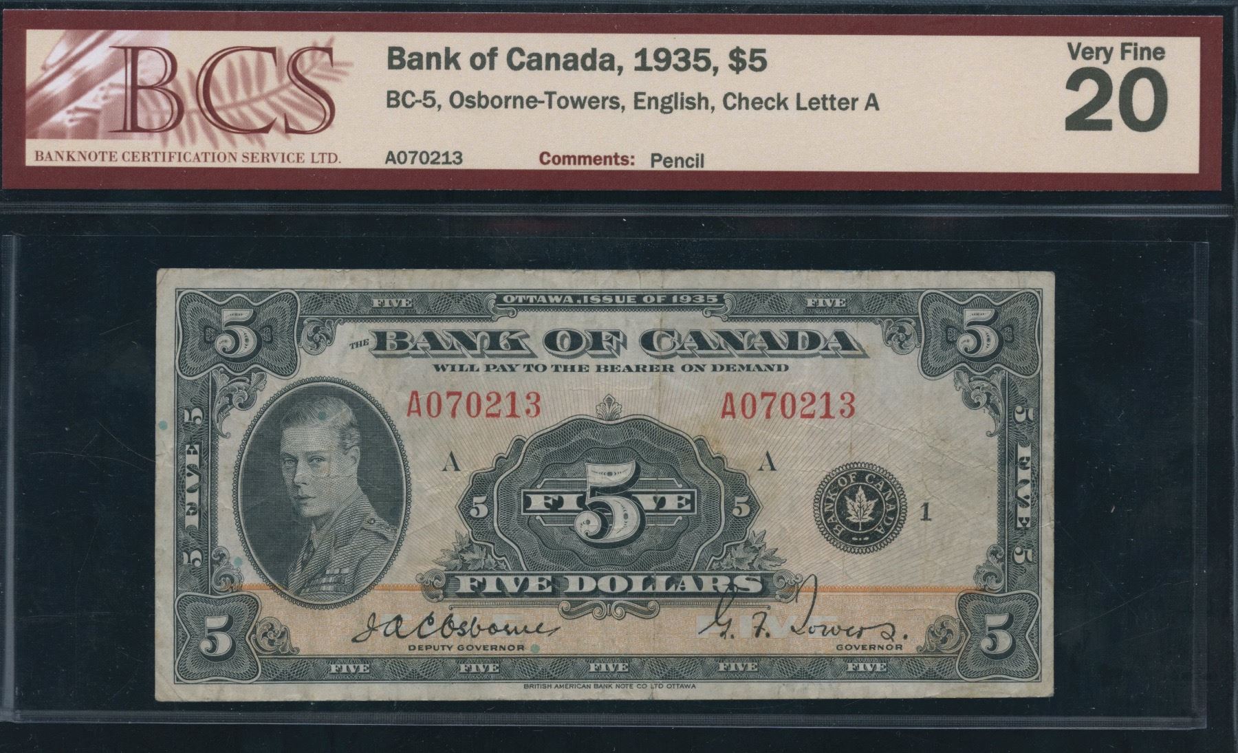 BC-5, Osborne-Towers, English, Check Letter A. BCS Very Fine 20. S/N: A070213