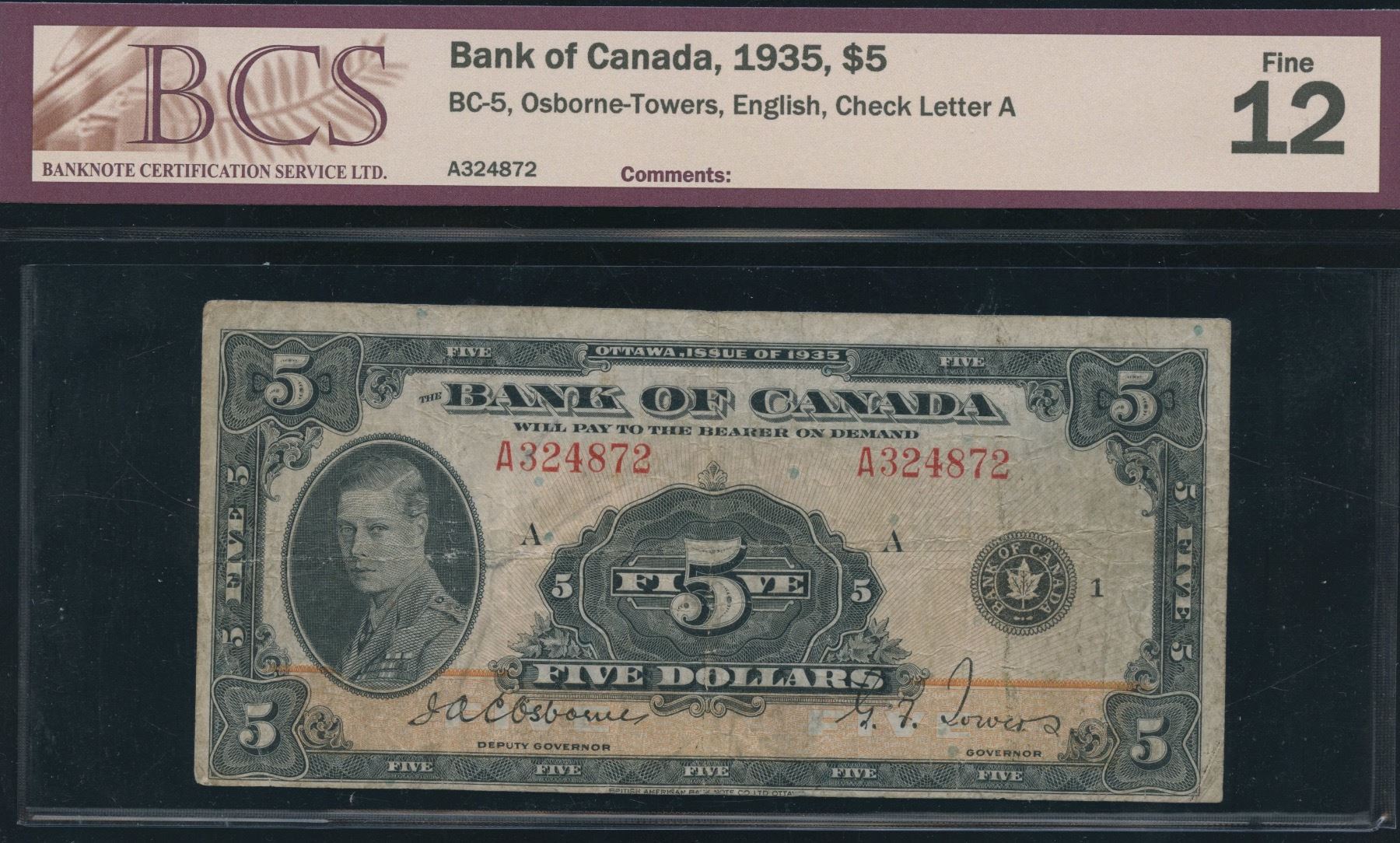 BC-5. BCS Fine 12. S/N: A324872/A.