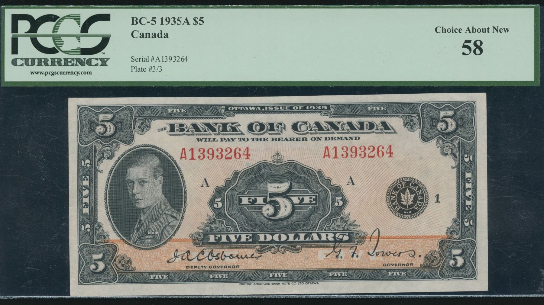 BC-5. PCGS Choice AU58. S/N:A1393264/A.