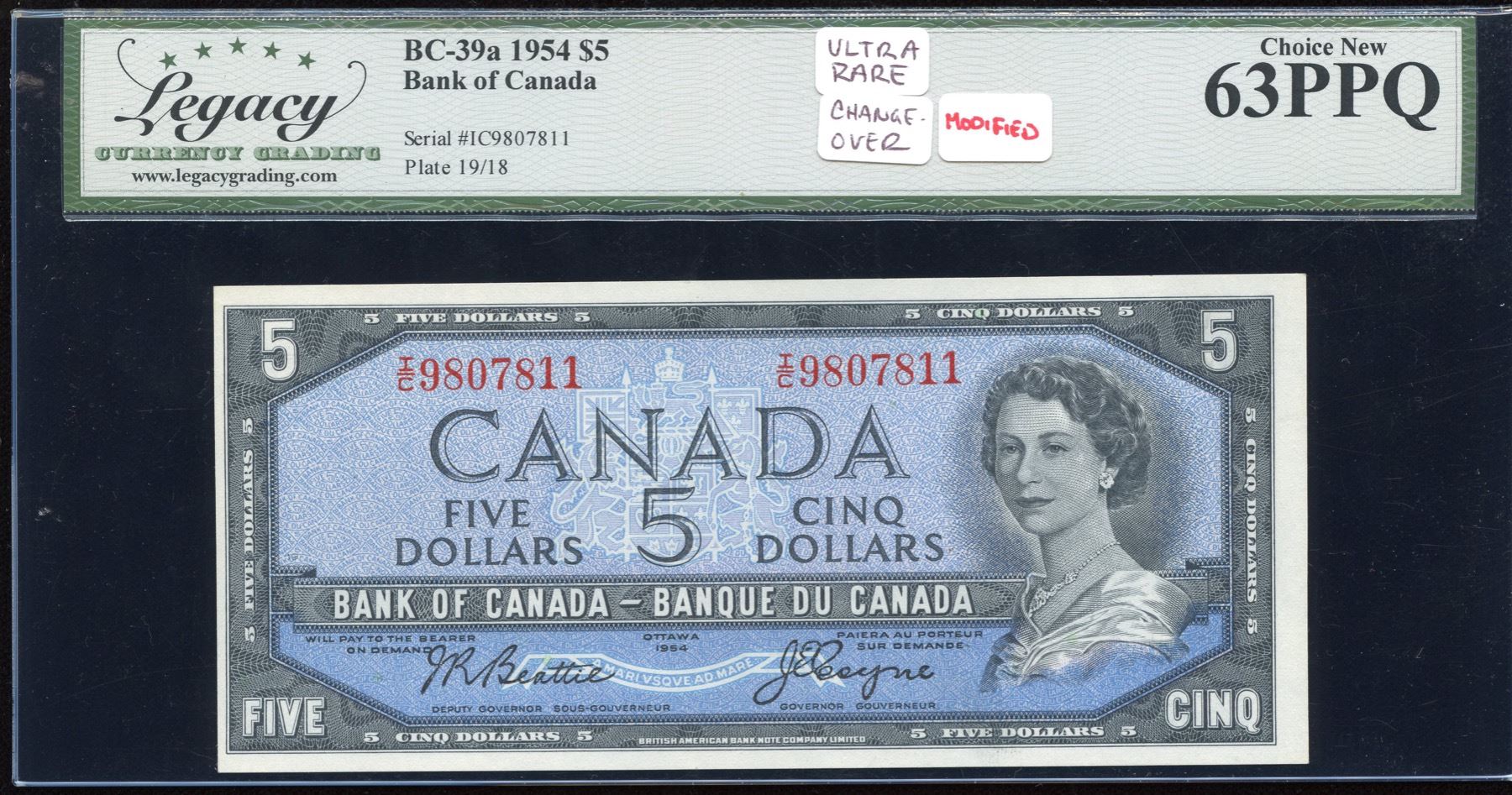 BC-39a. Legacy Choice New 63 PPQ, Beattie-Coyne, modified. With only 976,000 notes printed, the modified I/B note in high grade is missing from then most advanced collections. S/N: I/C9807811.