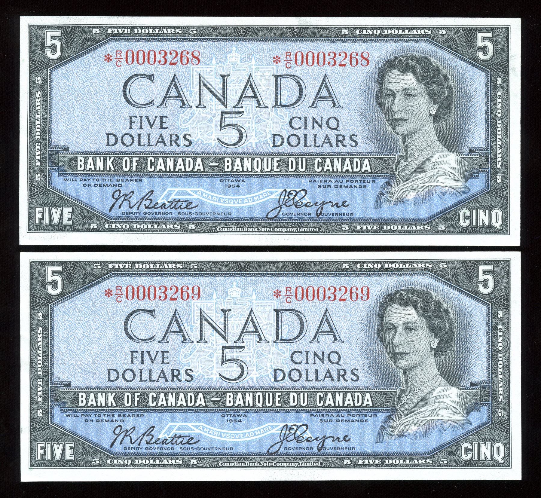 BC-39aA-i. Both have a heavy counting crease at bottom left, otherwise Unc's. S/N:*R/C0003268-3269. 2 Pcs.