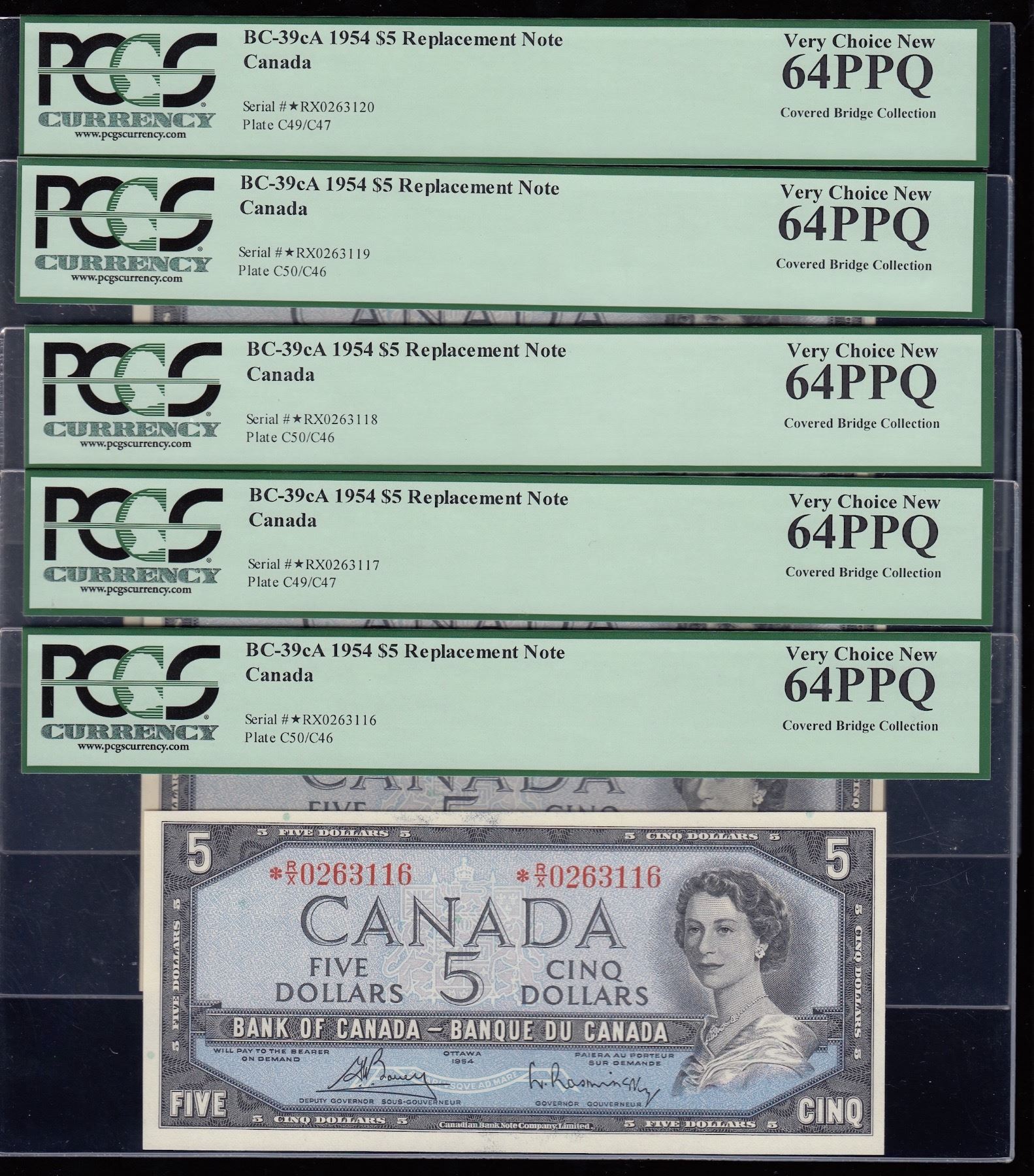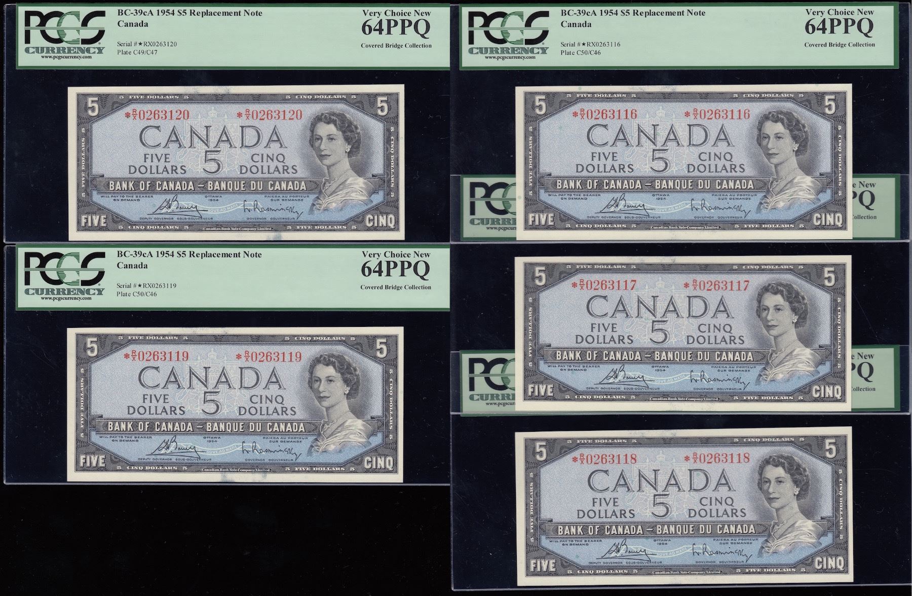 BC-39cA, All PCGS Very Choice New 64 PPQ, S/N:*R/X0263116-3120. 5 Pcs.