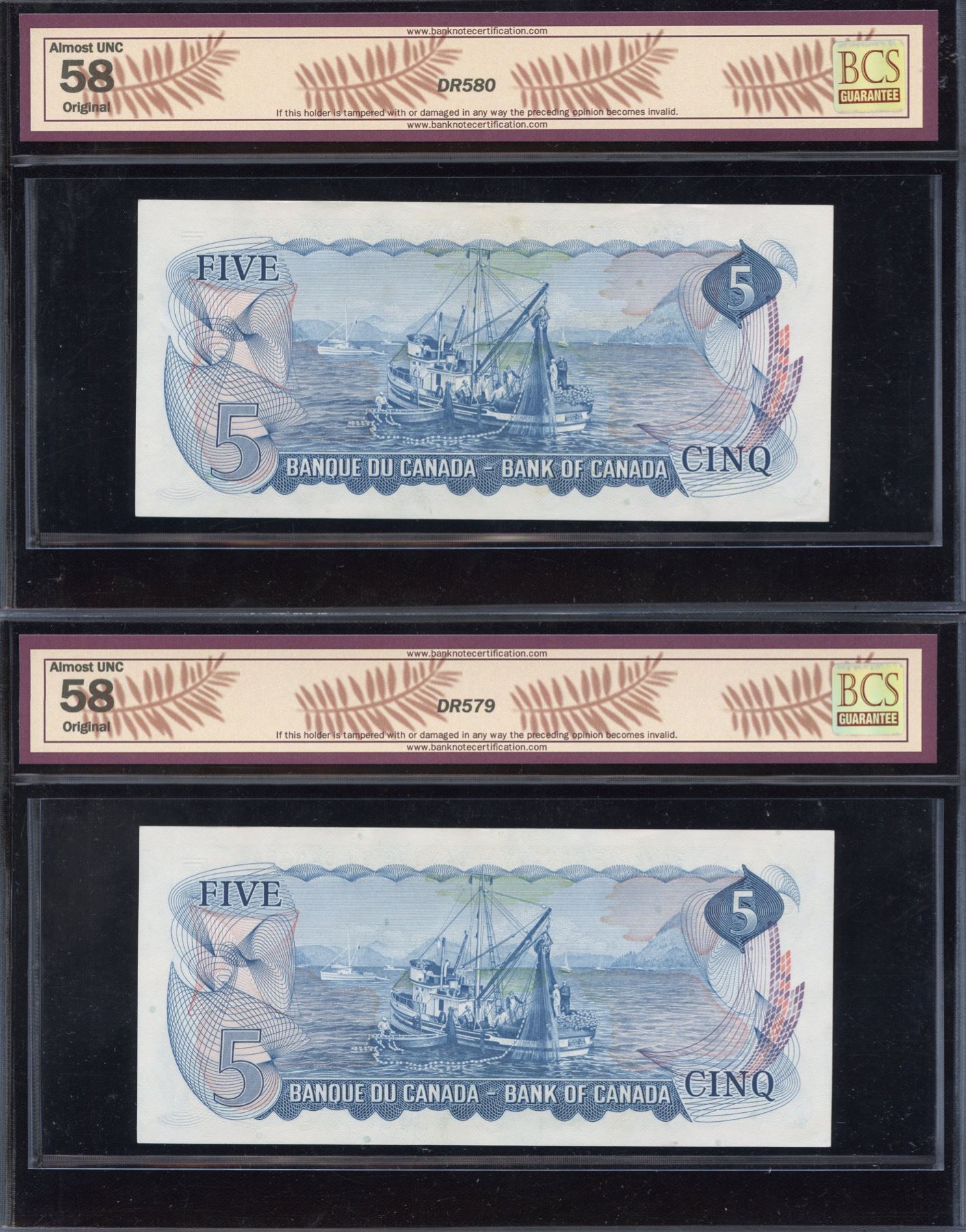 BC-48aA. BCS Almost UNC 58 Original, Bouey-Rasminsky, 2 consecutive replacement notes. S/N: *CD3093809-810. 2 pcs.