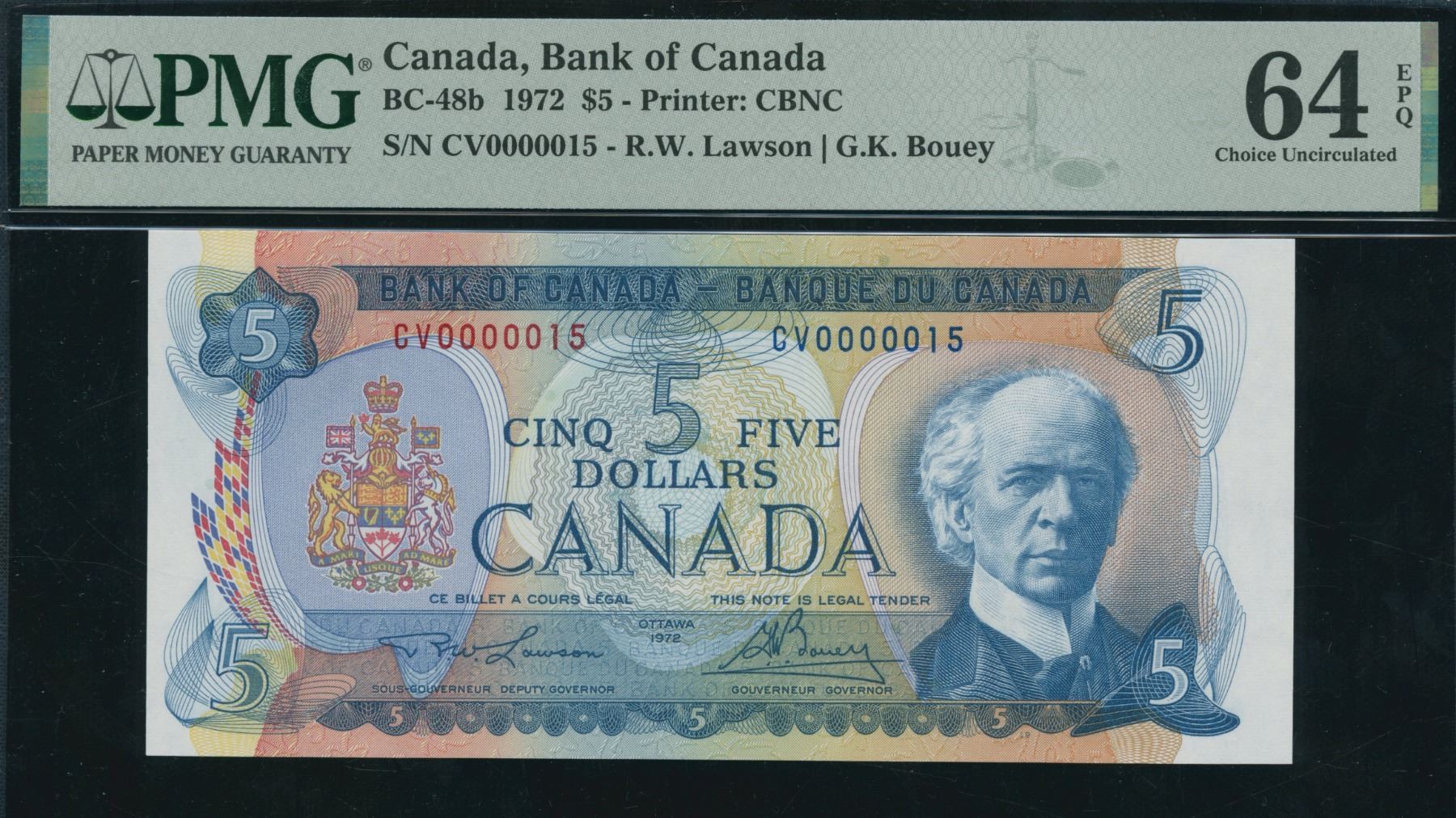 BC-48b-N5-iii. PMG Choice UNC 64EPQ. Part of the consecutive run. S/N: CV0000015.