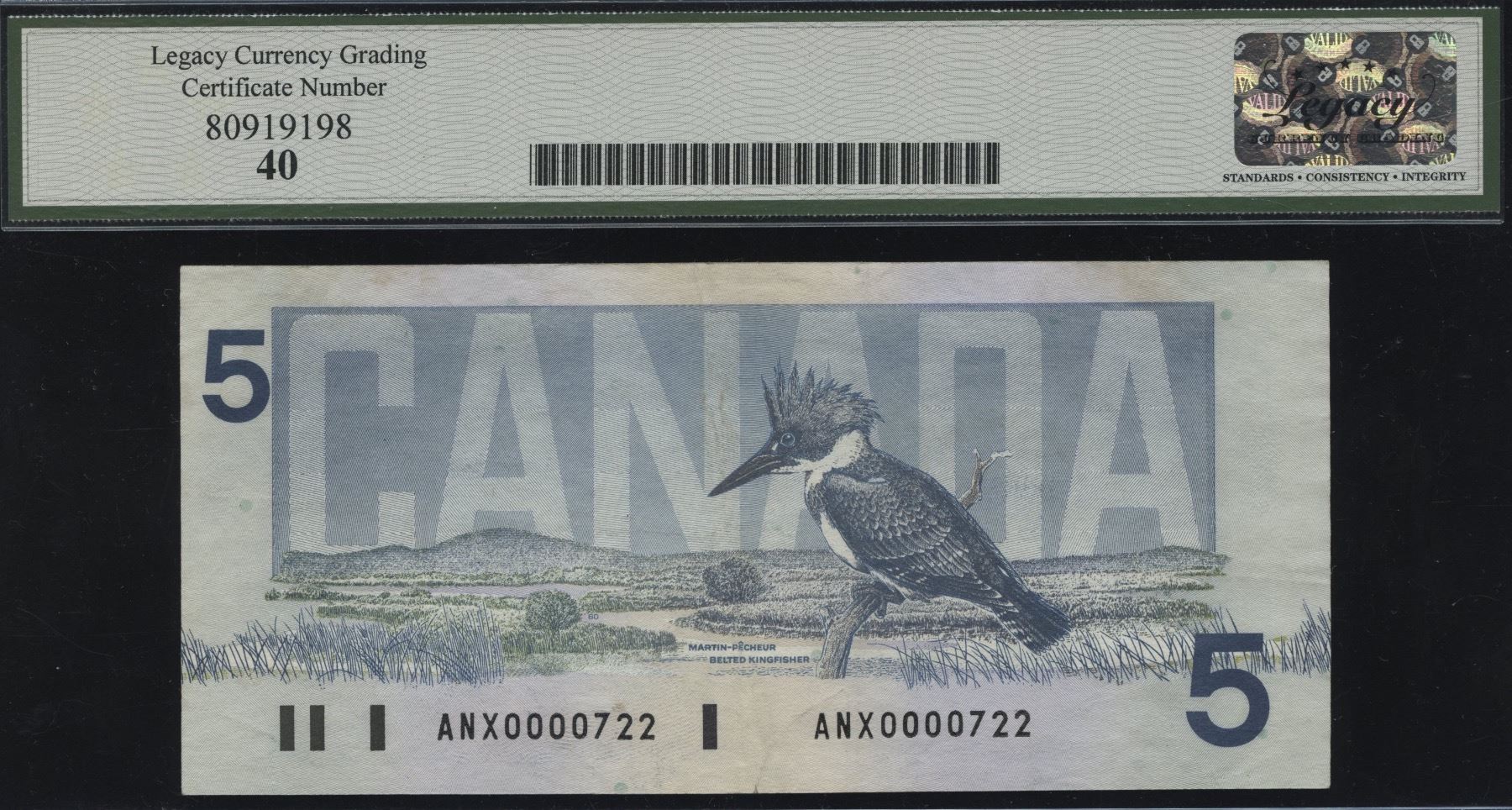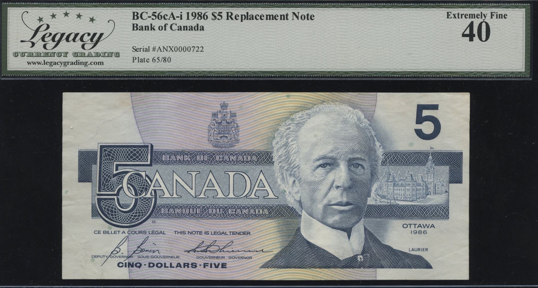 BC-56cA-i-N5-iv. Bonin-Thiessen, Replacement Low Serial Number. Legacy Extremely Fine 40. S/N:ANX0000722. Nice match to the previous lot.