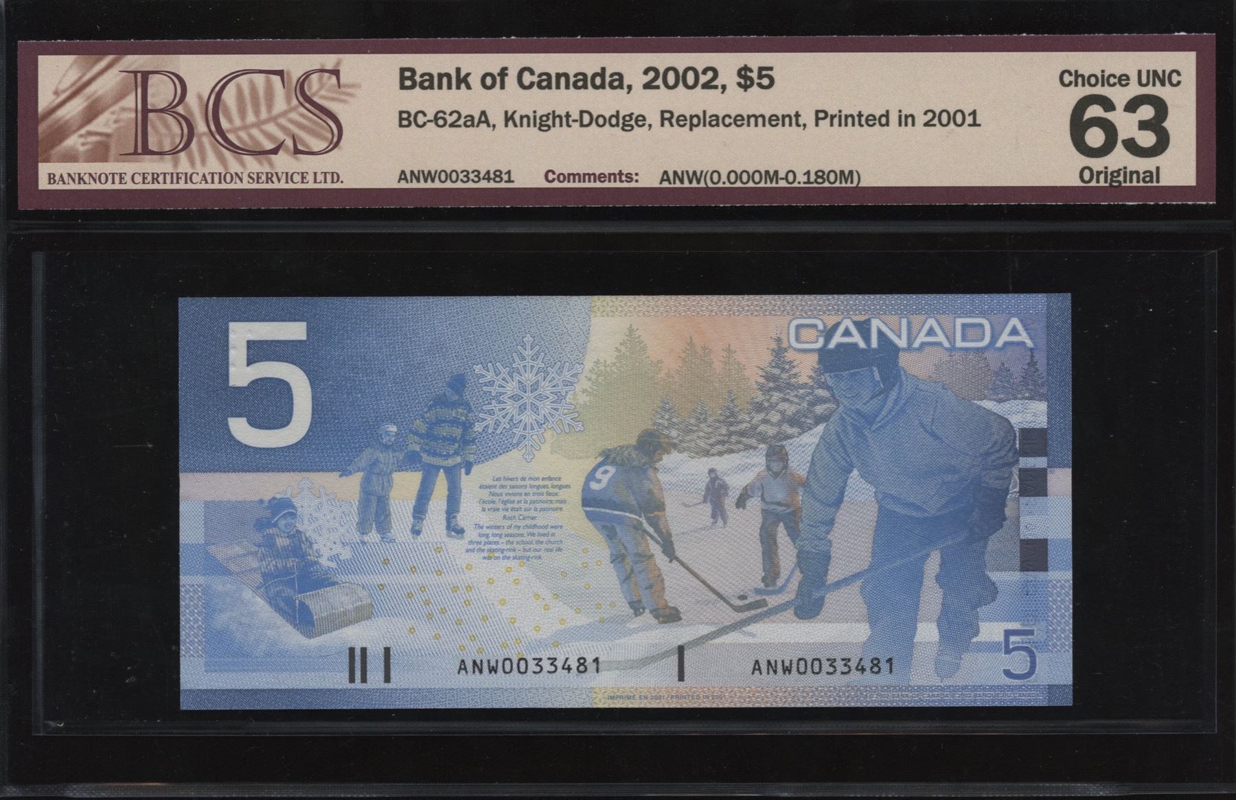 BC-62aA. Knight-Dodge, Replacement, Printed in 2001. BCS Choice UNC 63 Original. S/N:ANW0033481, ANW(0.000M-0.180M).