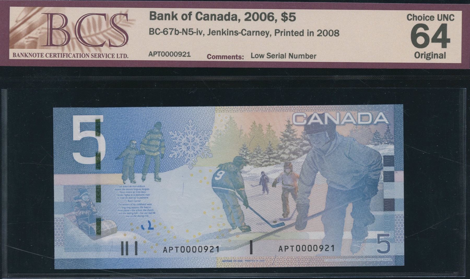 BC-67b, N5-iv. BCS Choice UNC 64, original. S/N: APT0000921.