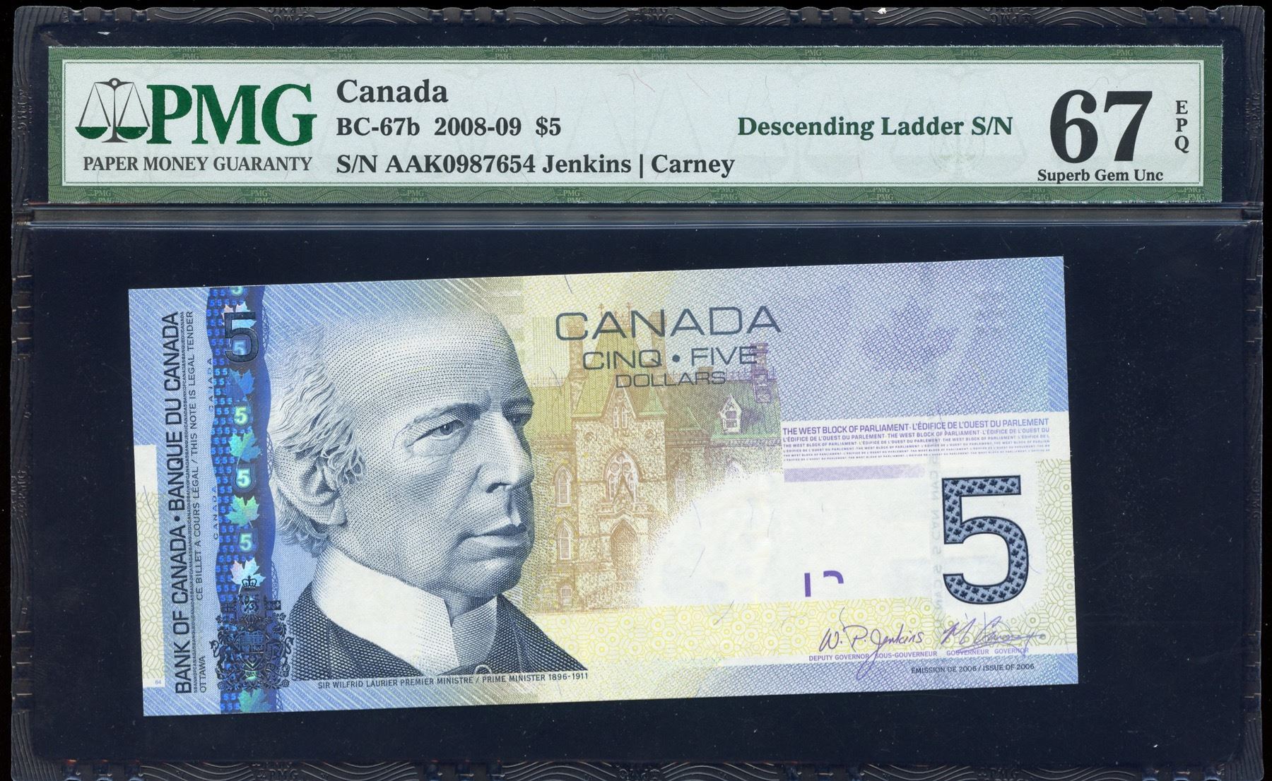 BC-67b. PMG Superb Gem Unc. 67. S/N:AAK0987654.
