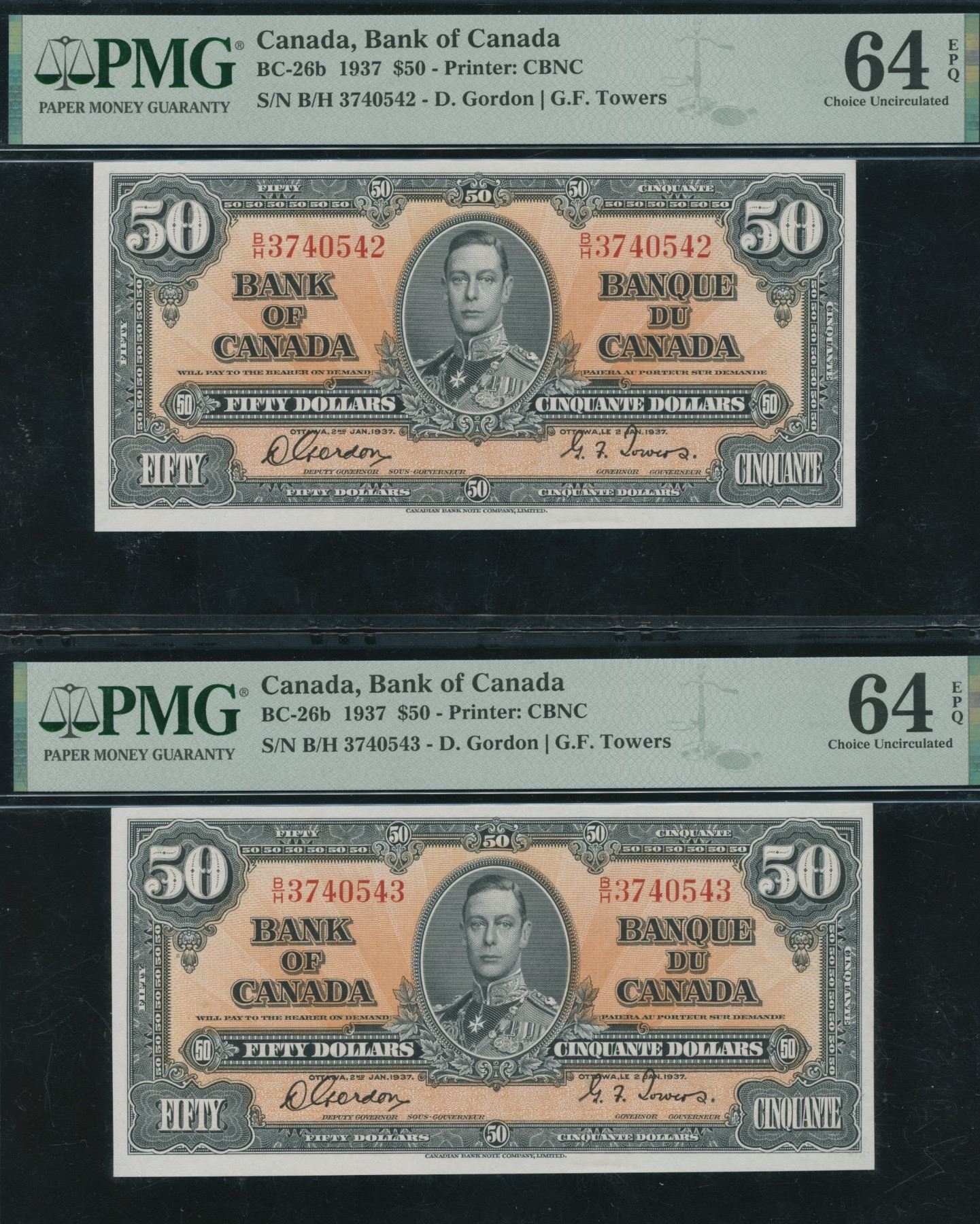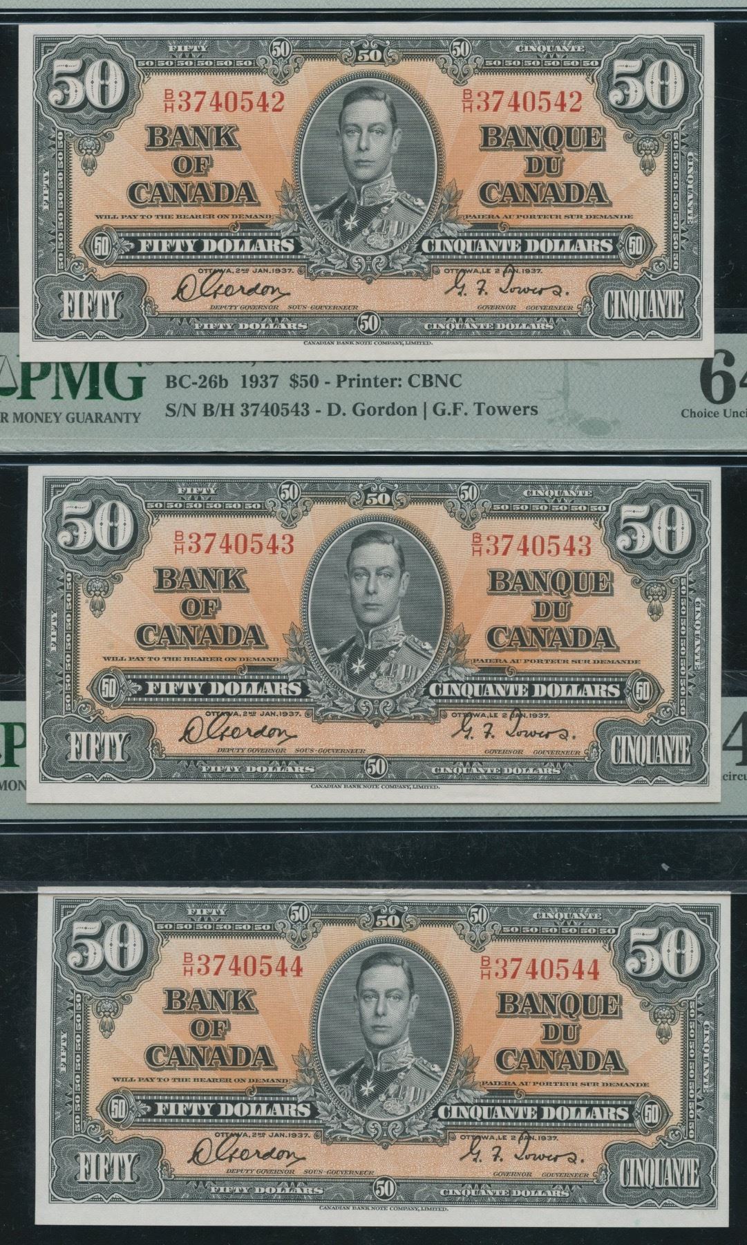 BC-26b. All PMG Choice Unc 64 EPQ. S/N: B/H3740542-0544. 3 pcs.