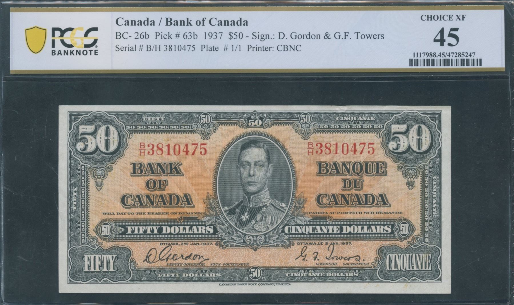 BC-26b. PCGS Choice XF45. S/N: B/H3810475.