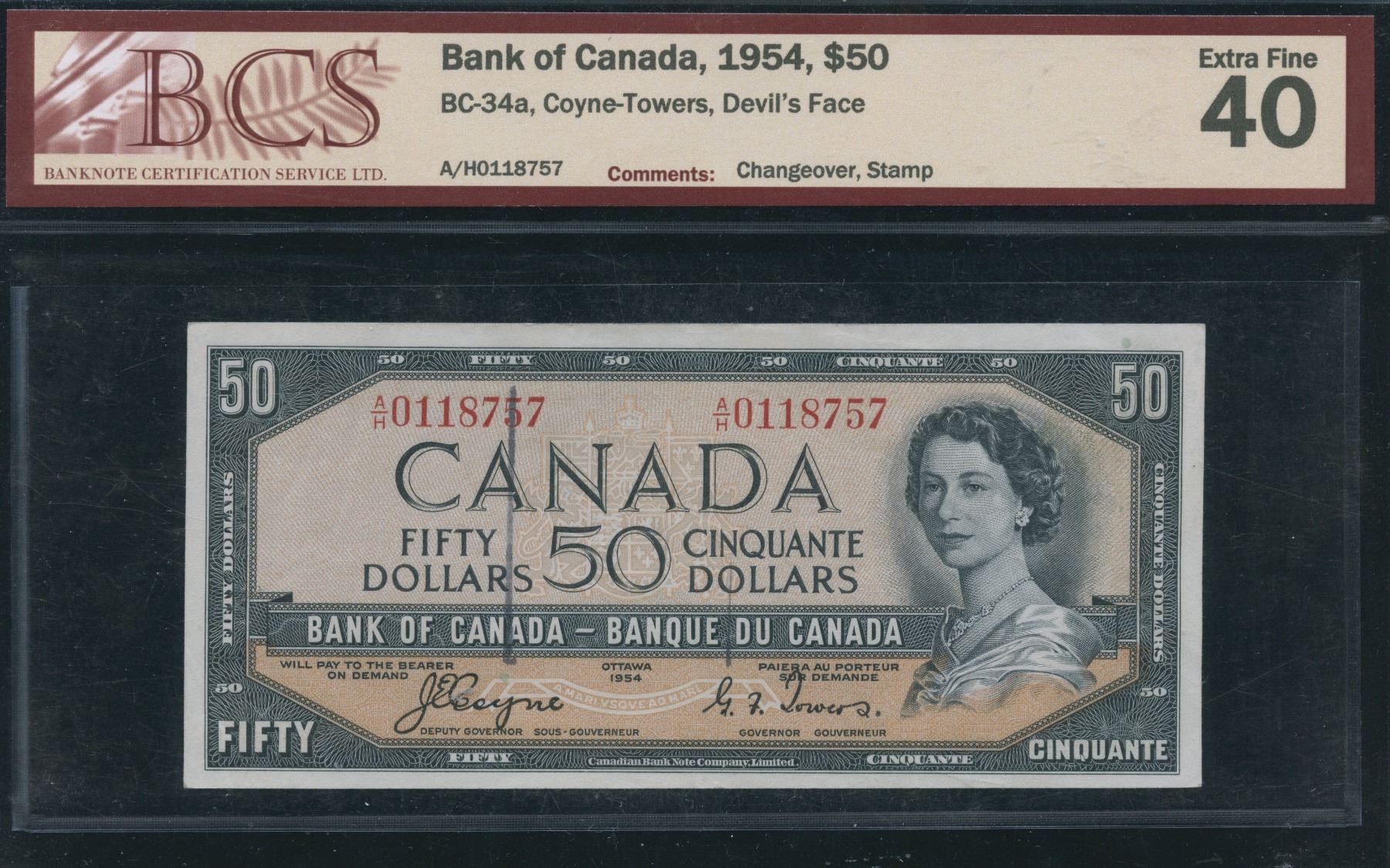 BC-34a. BCS EF40, changeover, bank stamp on front. S/N:A/H0118757.