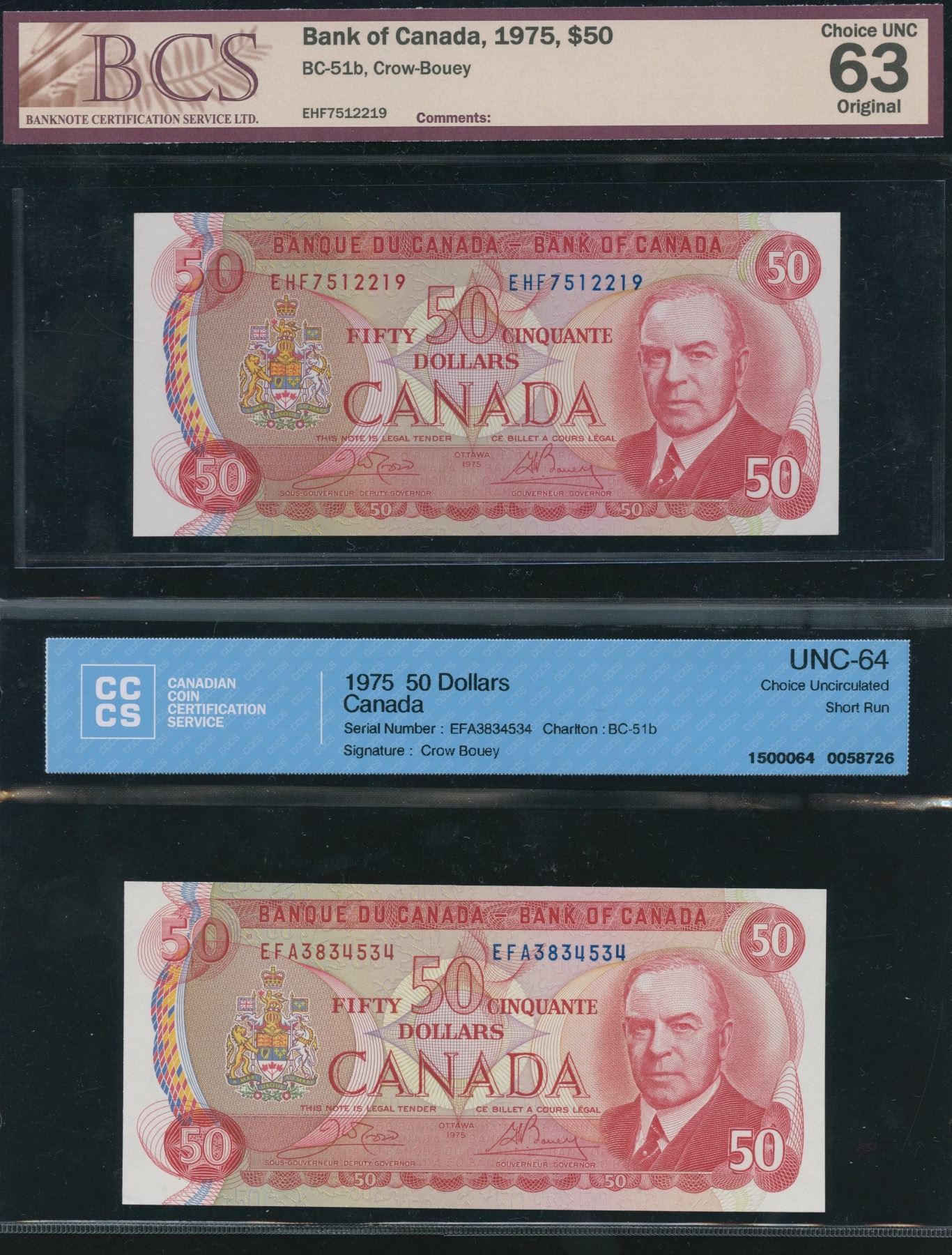 BC-51b. CCCS UNC-64, short run. S/N: EFA3834534. BCS Choice UNC 63, original. S/N: EHF7512219. 2 pcs.