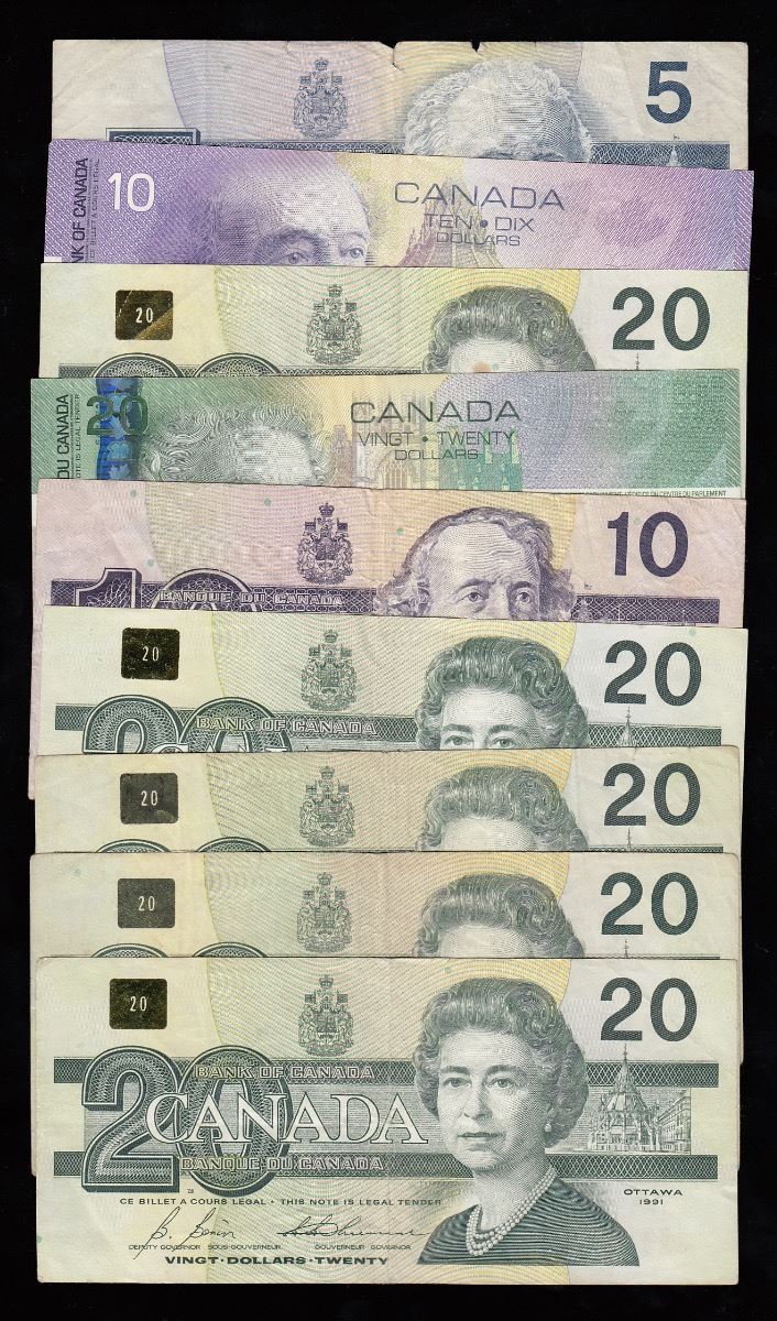 Bank of Canada Banknote lot with Radar - Assorted Banknote lot with Radar $5 ANP1710171, FDZ9446449, $20, 7518157, $20 8991998 & Replacement $10 ATX (1), $20 AIX (3) $20 EIX (1) - Face Vale $145 - mixed grades.