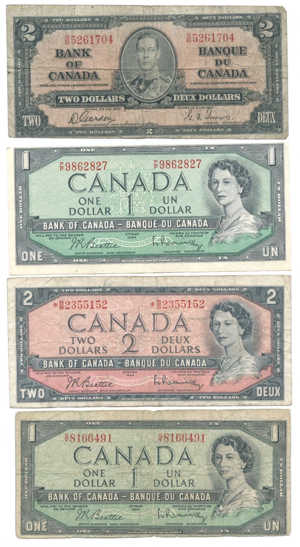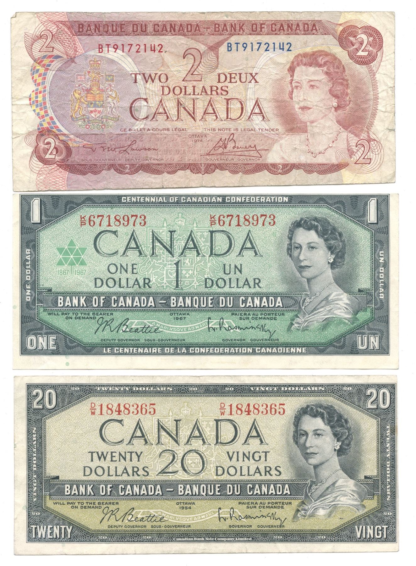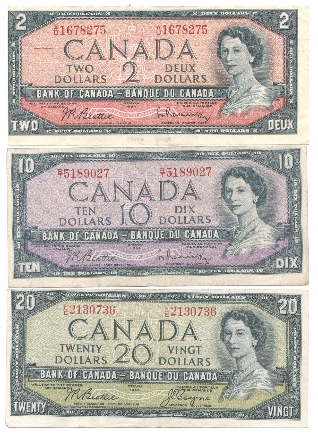Cut out of register lot. Circulated condition. A nice grouping of minor miscut error notes from the 1937, 1954, 1967 and multi colour series. Worth a closer view. 10 pcs.