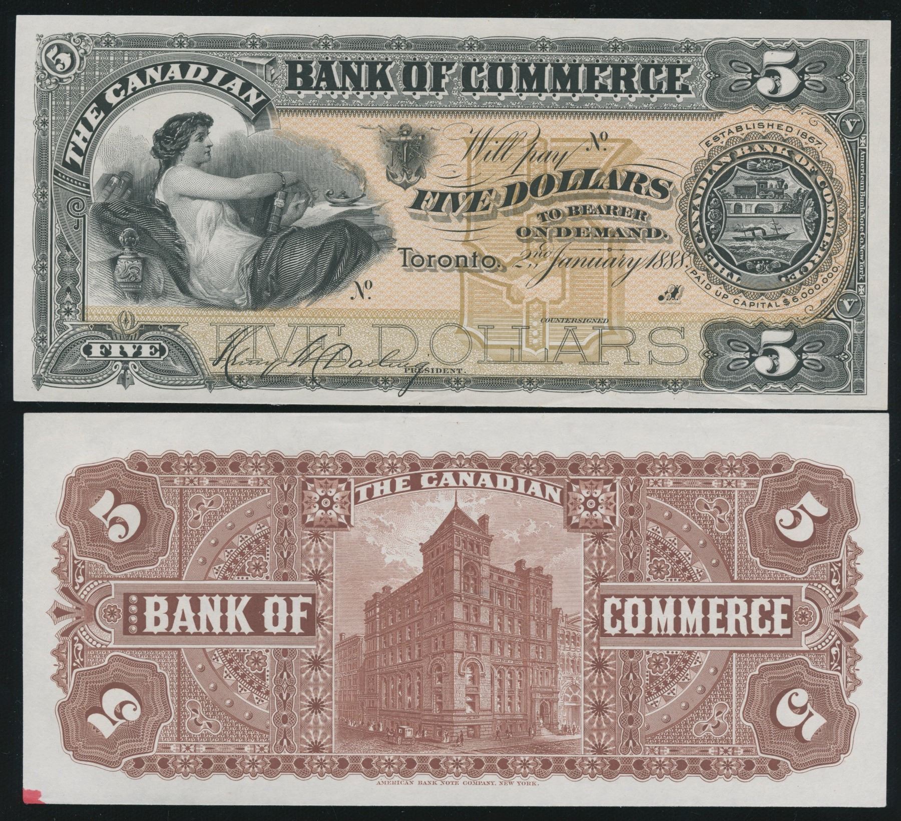 CH 75-14-02P. AU/Unc's. Handsome pair, small red ink mark on back piece. Issued note from this date is virtually unattainable.