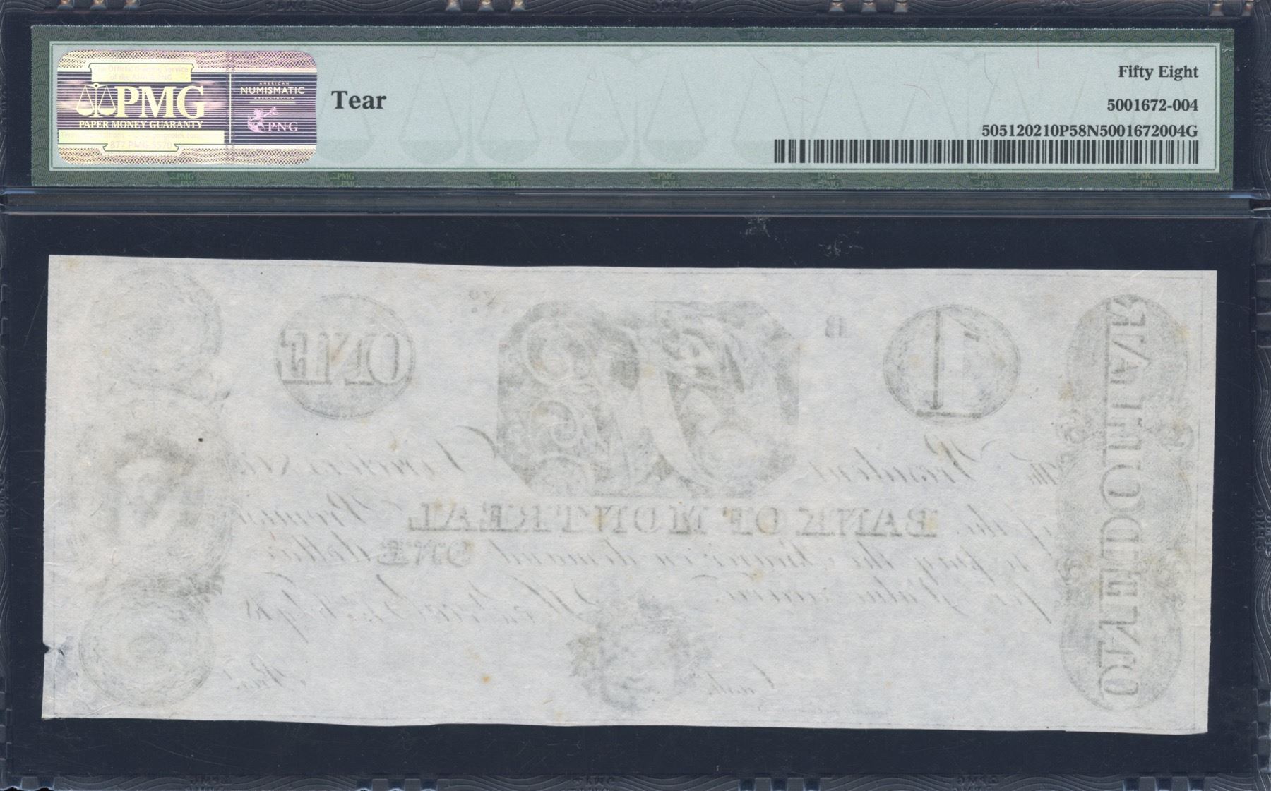 CH 505-12-02-10P. PMG AU58 net, tear. Rarely offered.