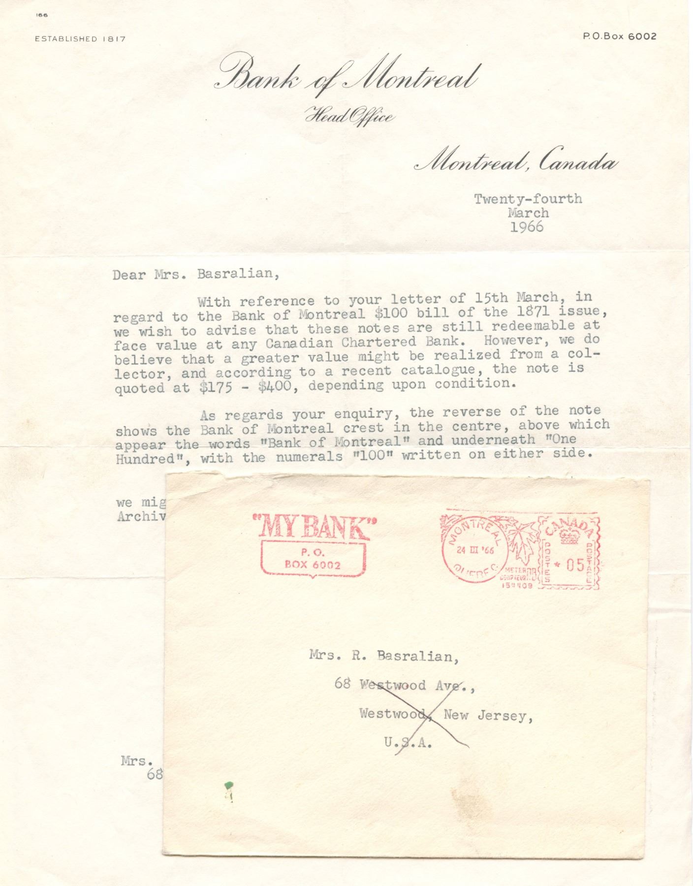 CH 505-34-12P. A circulated proof, aVG, accompanied with a nice letter from the Bank of Montreal's head office, 1966. A neat curiosity.