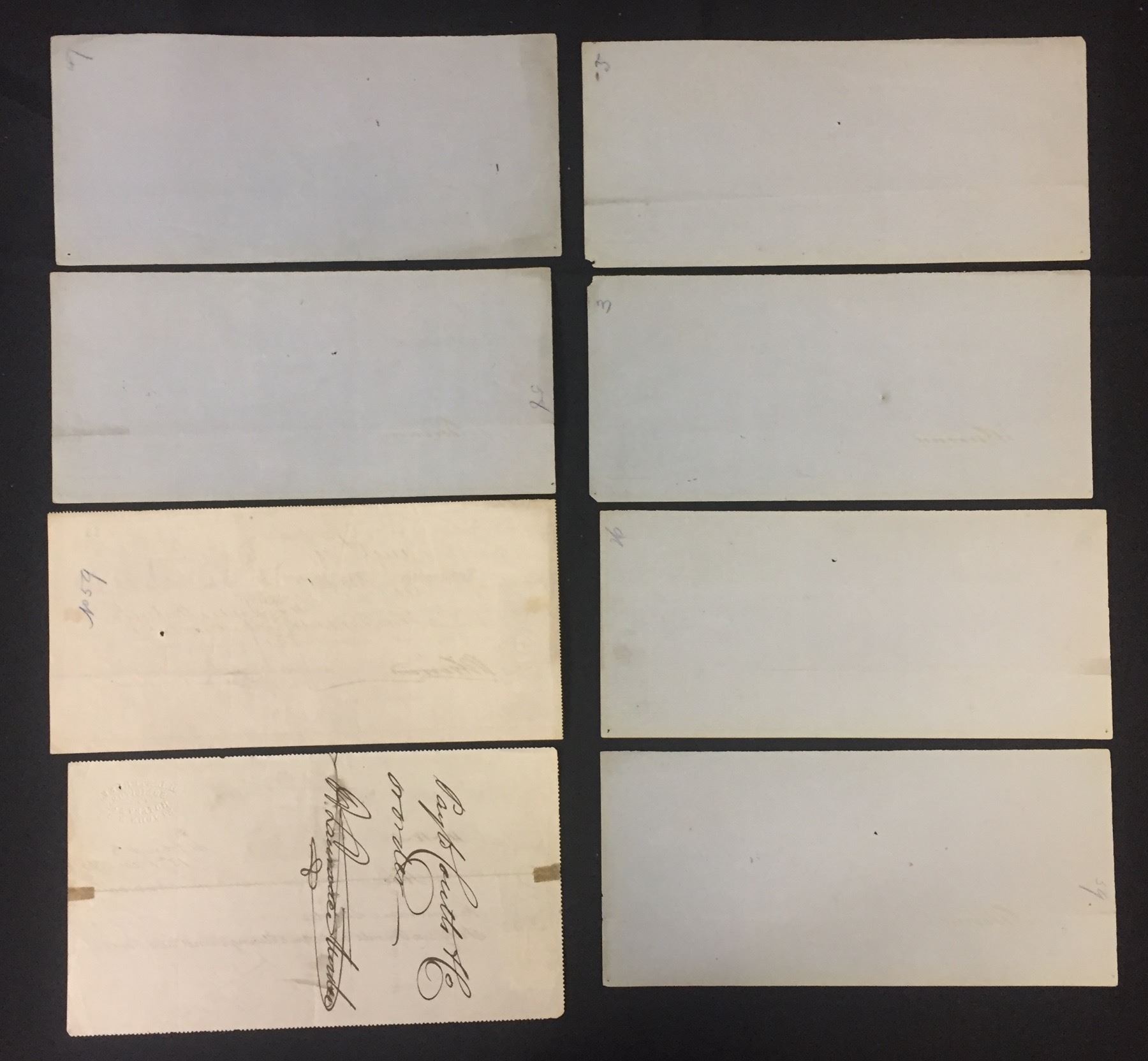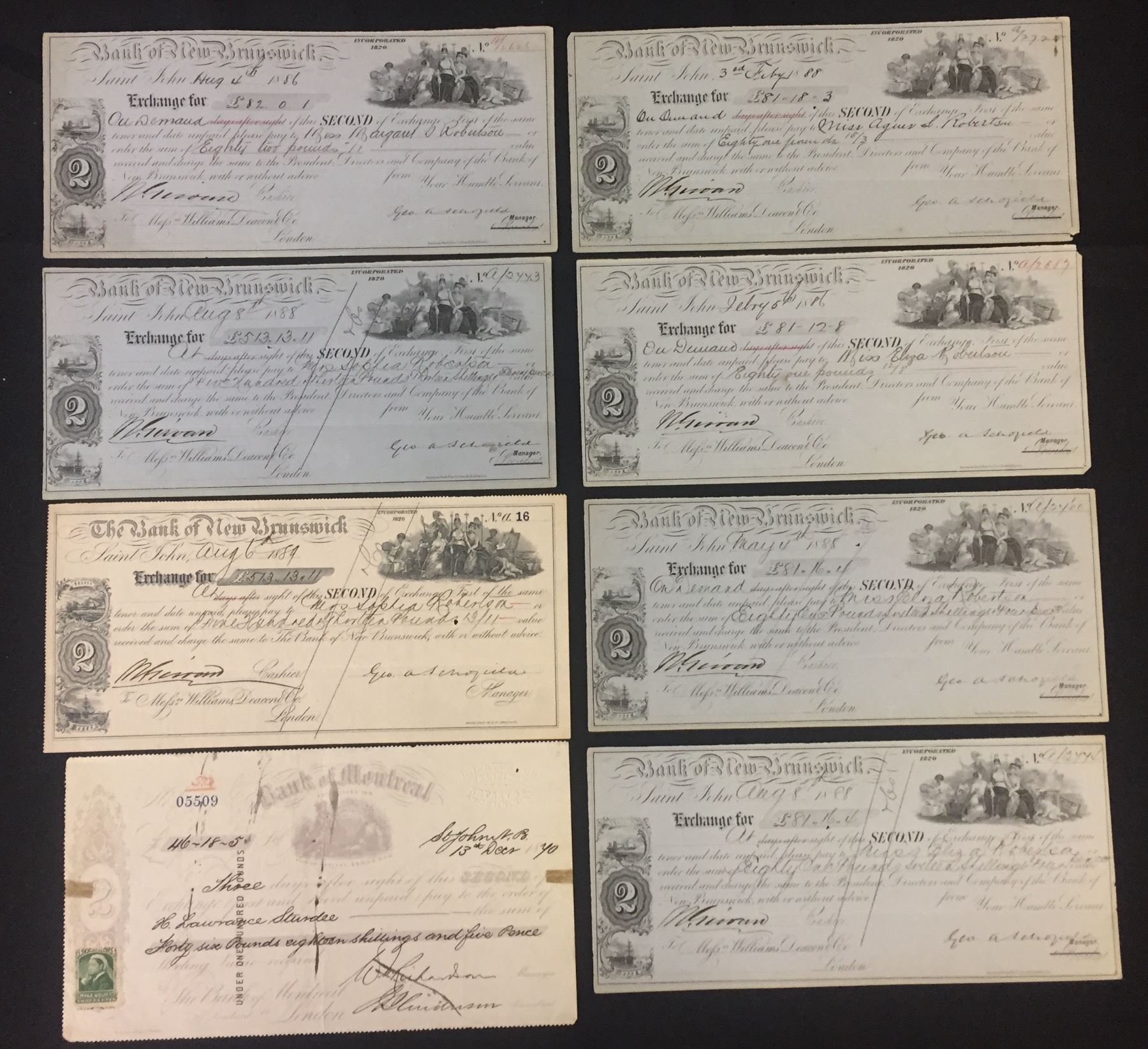 A neat lot of Second Bills of Exchange dated 1886-1889 in EF condition (x7). The signatures are of bank officials found on the banknotes of the said bank. There is also a Promissory note of the Bank of Montreal dated 1870 with a bill stamp attached. 8 Pcs.