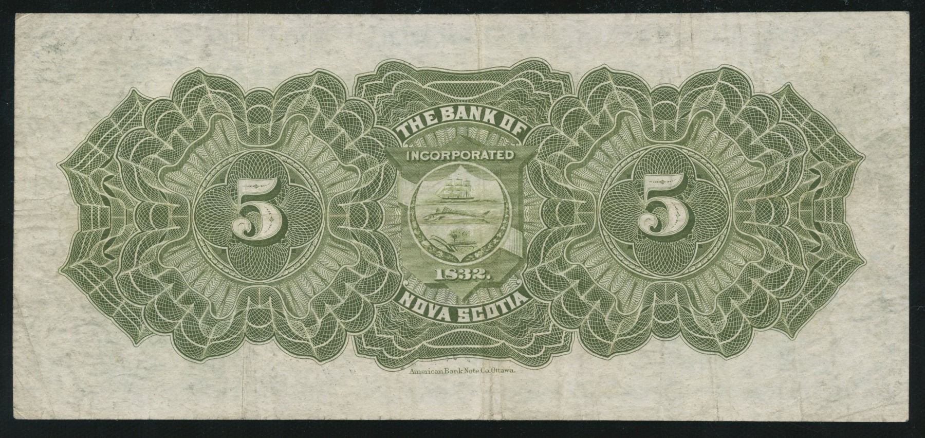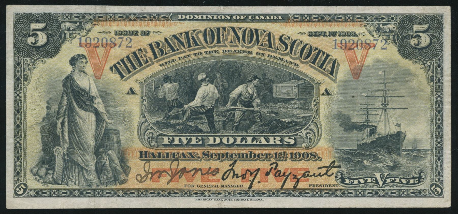 Bank of Nova Scotia $5, 1908 - Orange Vs