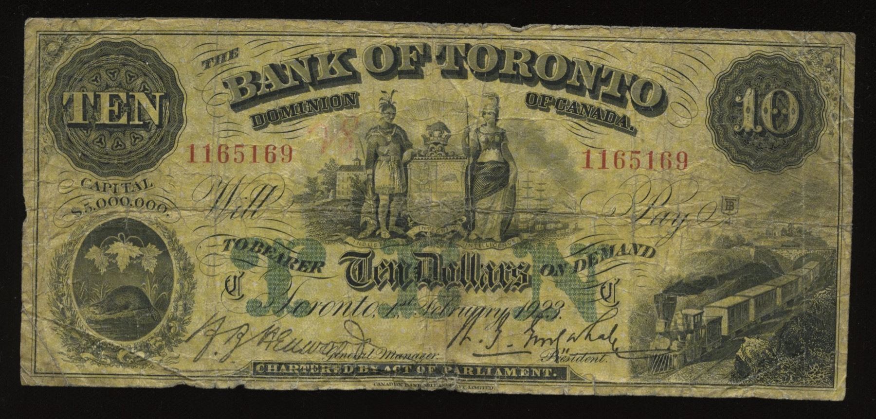 1923 The Bank of Toronto $10, CH 715-22-42, Henwood, VG/Fine, S/N 1165169
