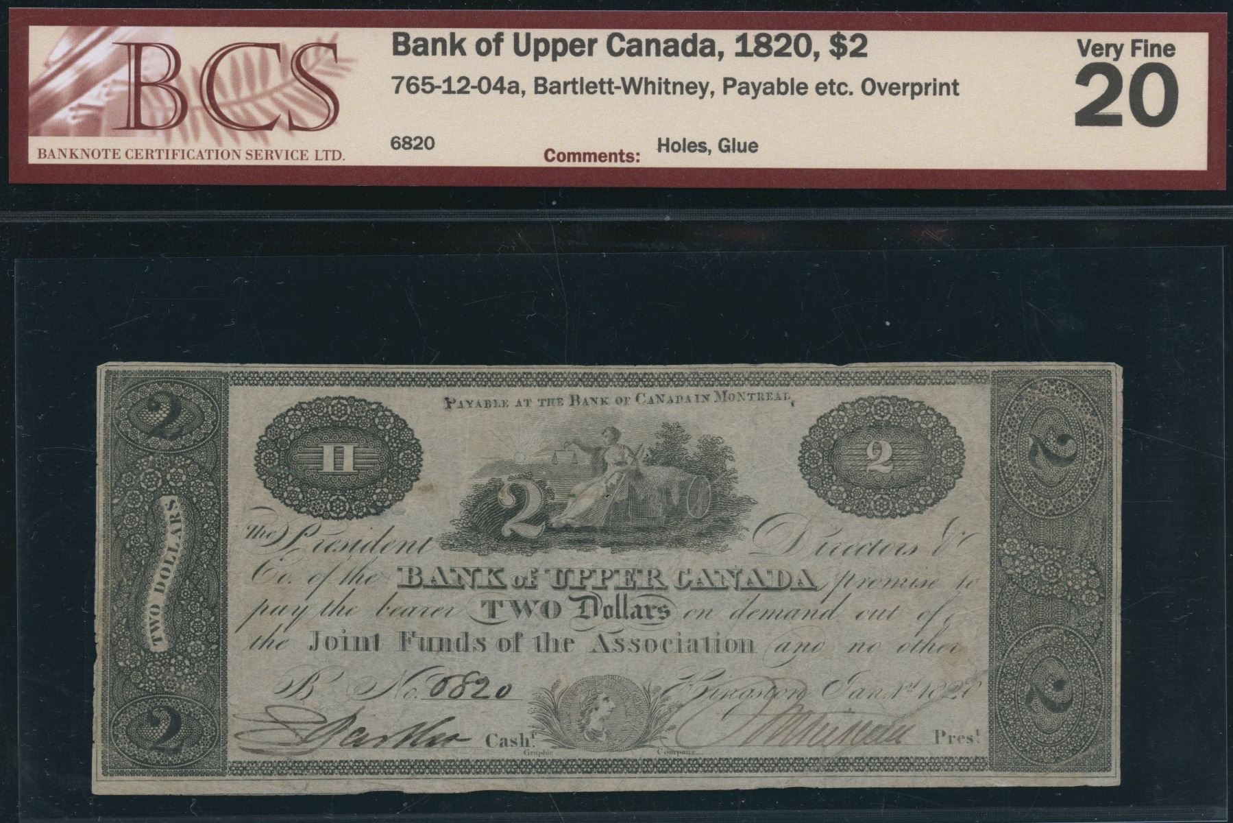 CH 765-12-04a. BCS Very Fine 20, holes, glue. S/N:6820.