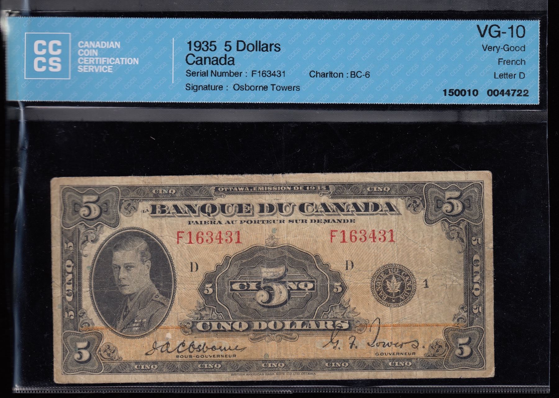 BC-6. CCCS VG10, back is faded. (holder is cut open). S/N: F163431/D.