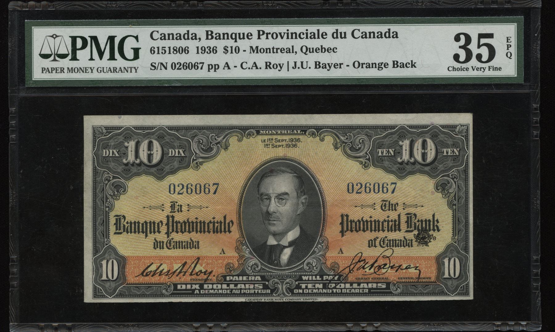 CH 615-18-06. PMG Choice VF35 EPQ. S/N: 026067/A.