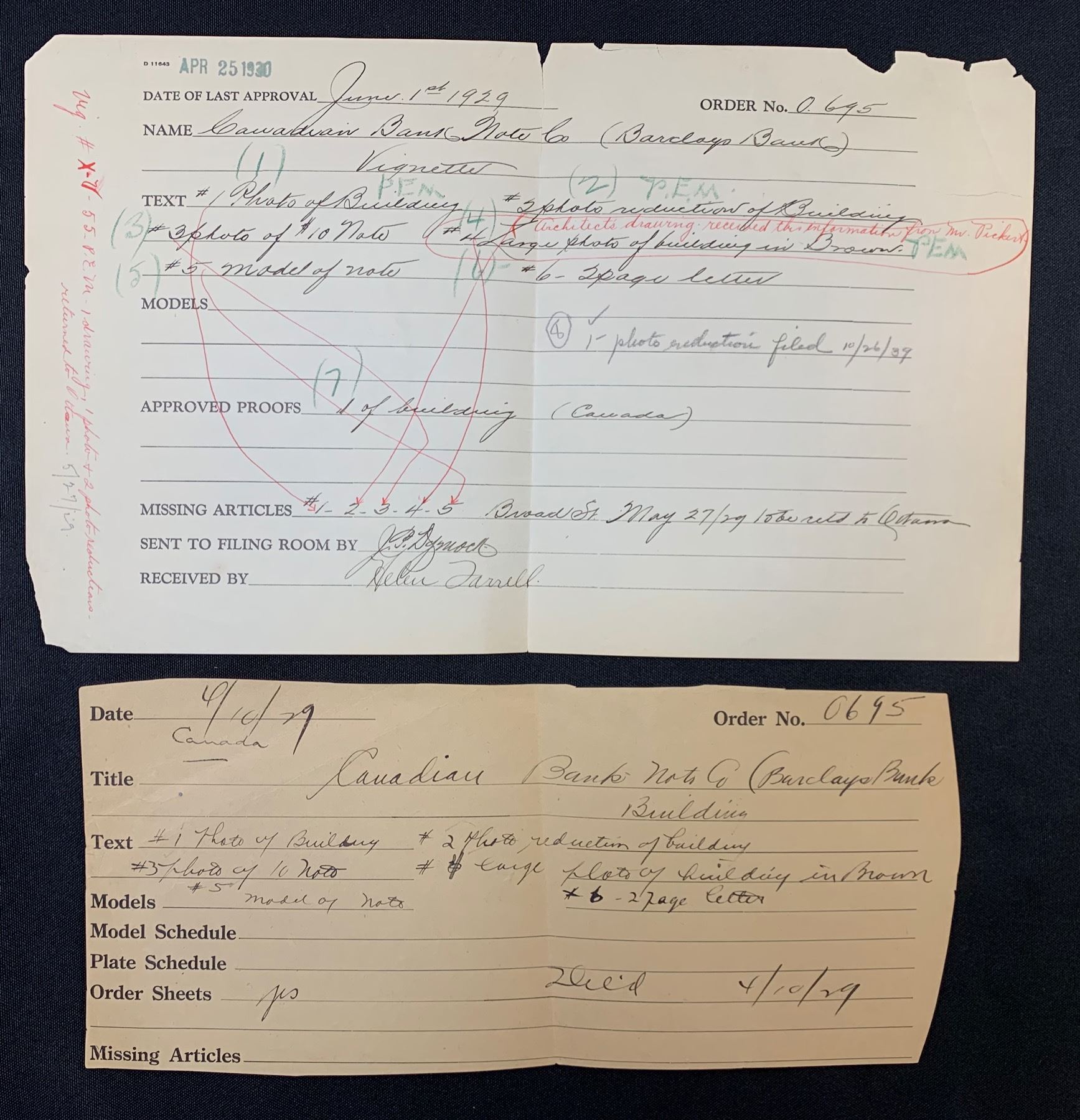 Includes order forms, approvals and letter to American Bank Note Company. 5 Pcs.